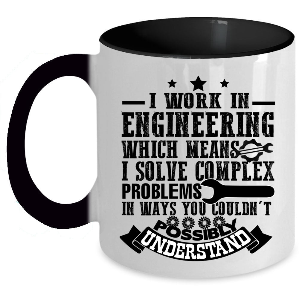 Cute Gift For Engineers Coffee Mug, I Work In Engineering Accent Mug