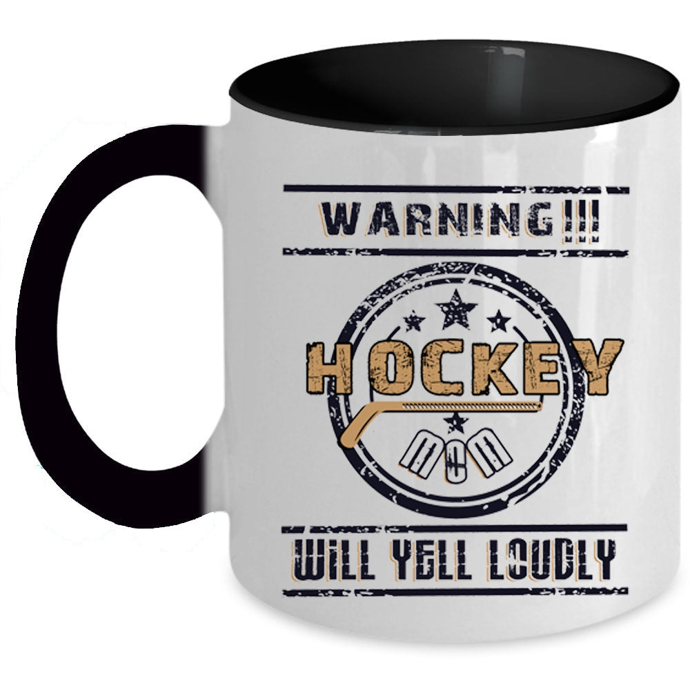 Cute Gift For Hockey Mom Coffee Mug, Hockey Mom Will Yell Loudly Accent Mug