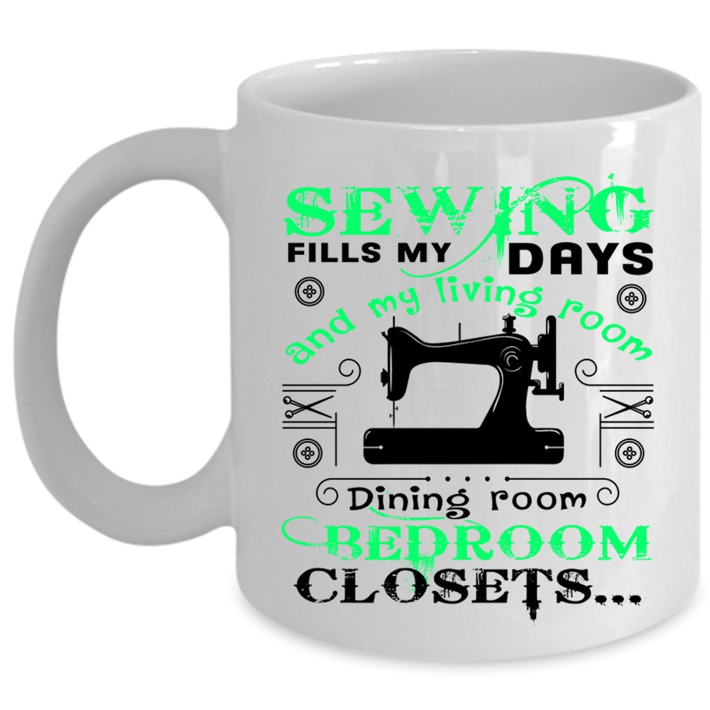 Cute Gift For Mom Coffee Mug, Sewing Fills My Days Cup