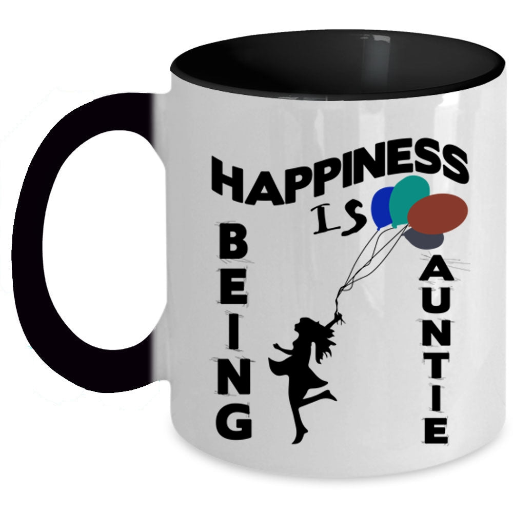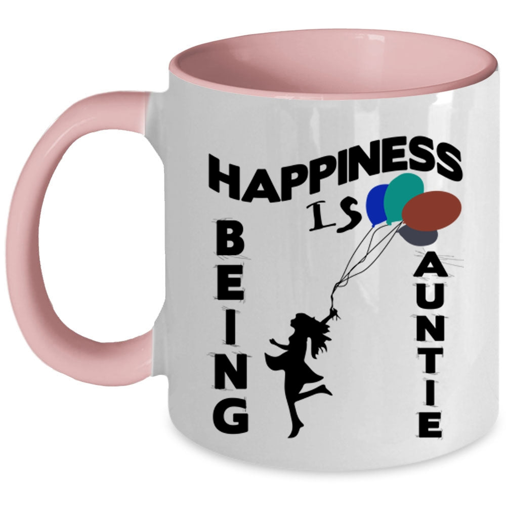 Cute Gift For My Aunt Coffee Mug, Happiness is Being Auntie Accent Mug