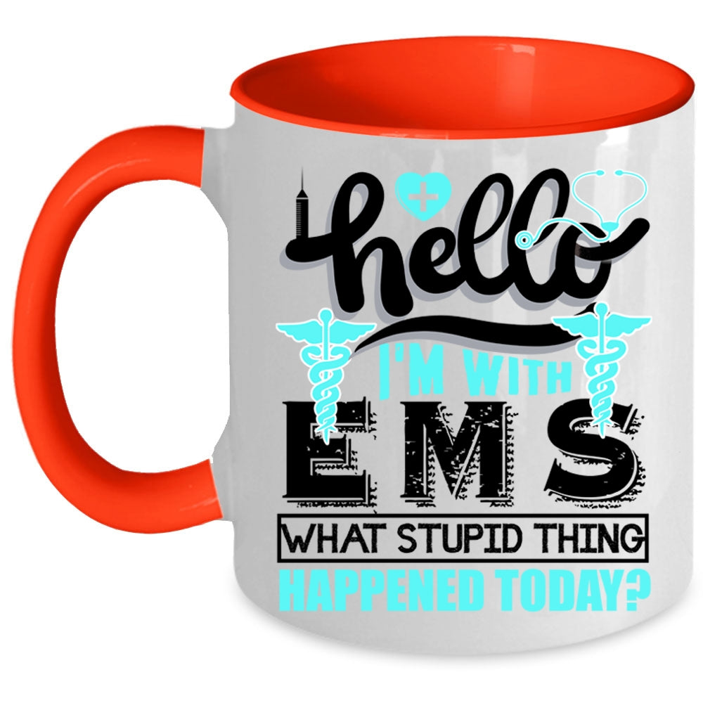 Cute Gift For Nurses Coffee Mug, I'm With EMS Accent Mug