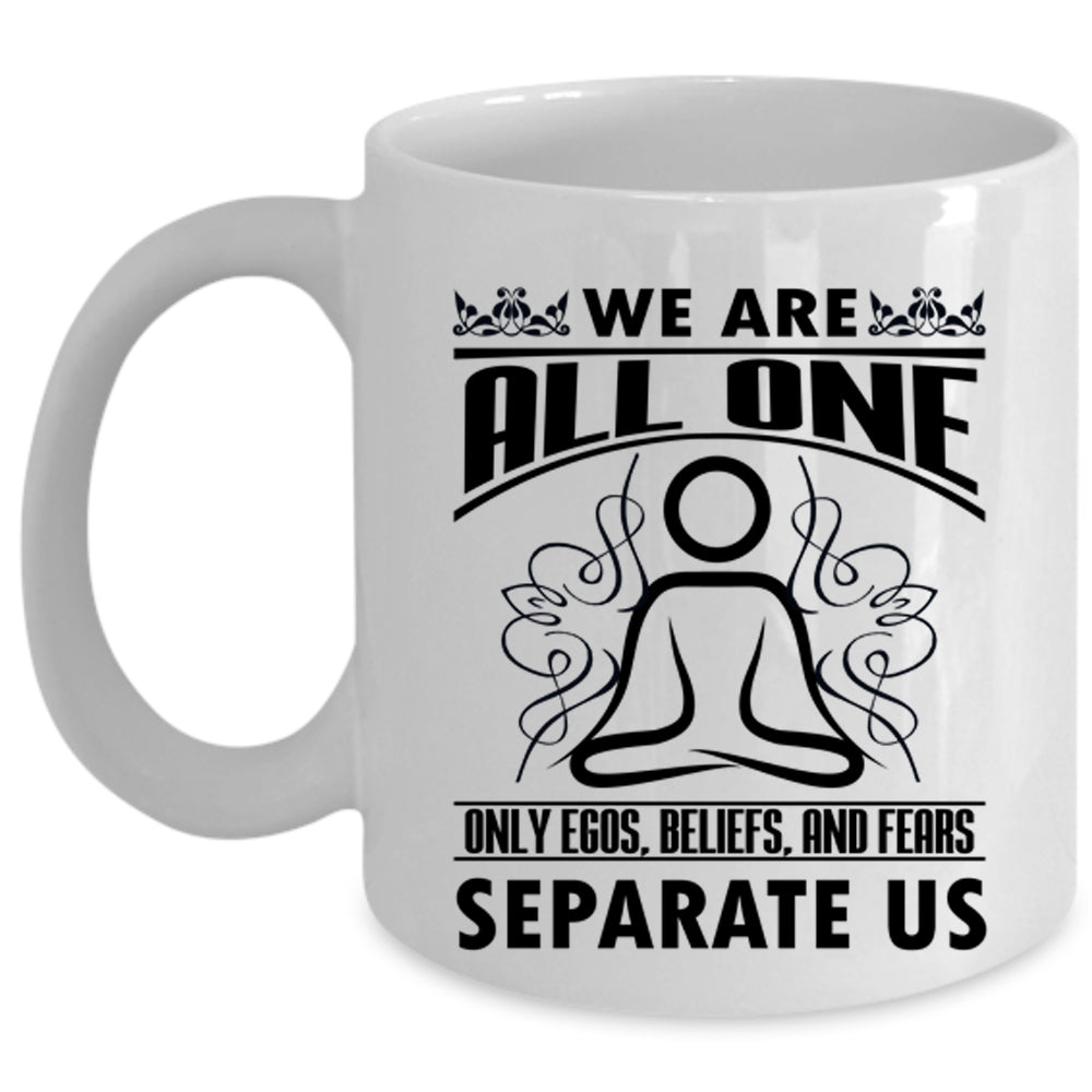 Cute Gift For Yogi Coffee Mug, We Are All One Only Egos Beliefs Cup