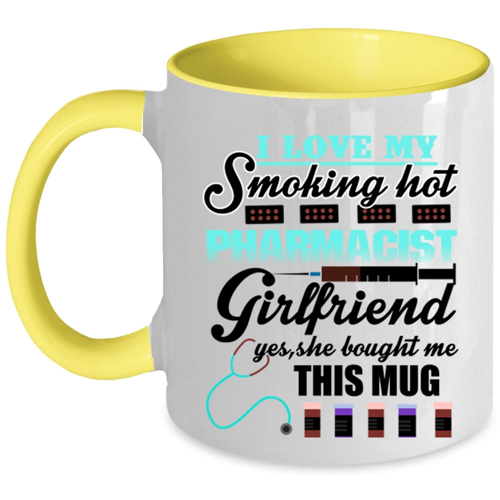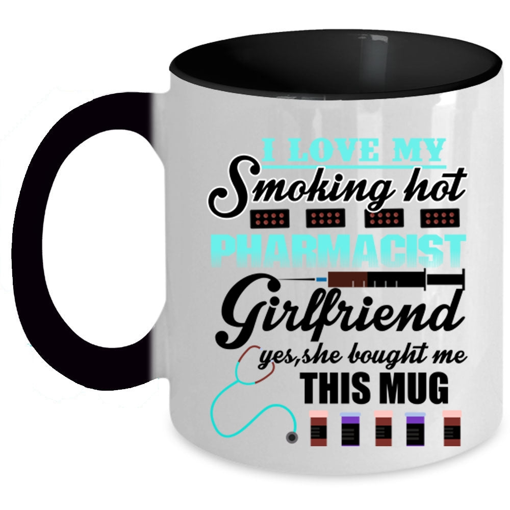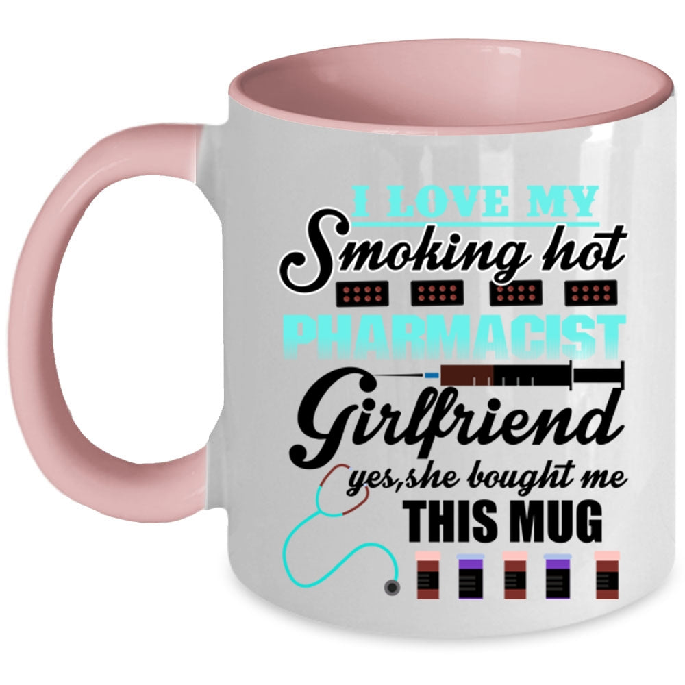 Cute Girlfriend Coffee Mug, I Love My Hot Pharmacist Girlfriend Accent Mug