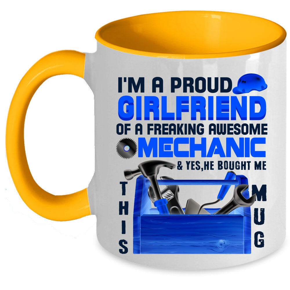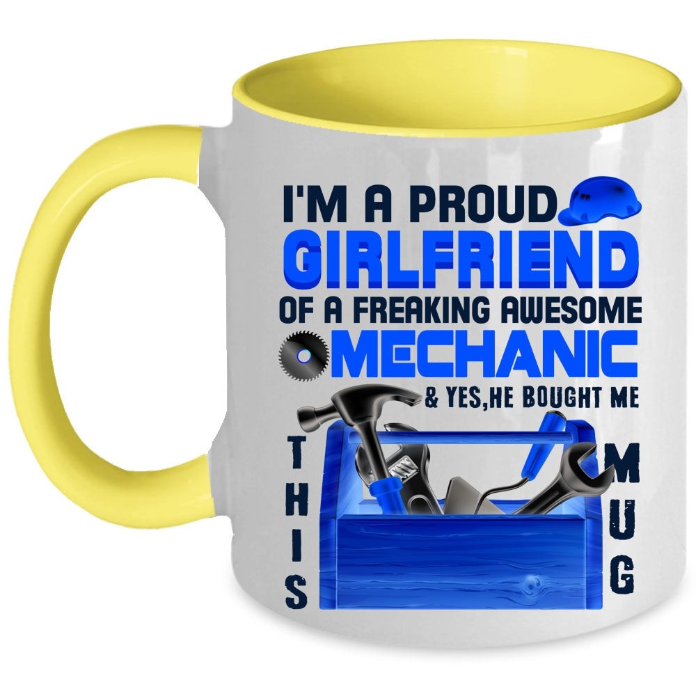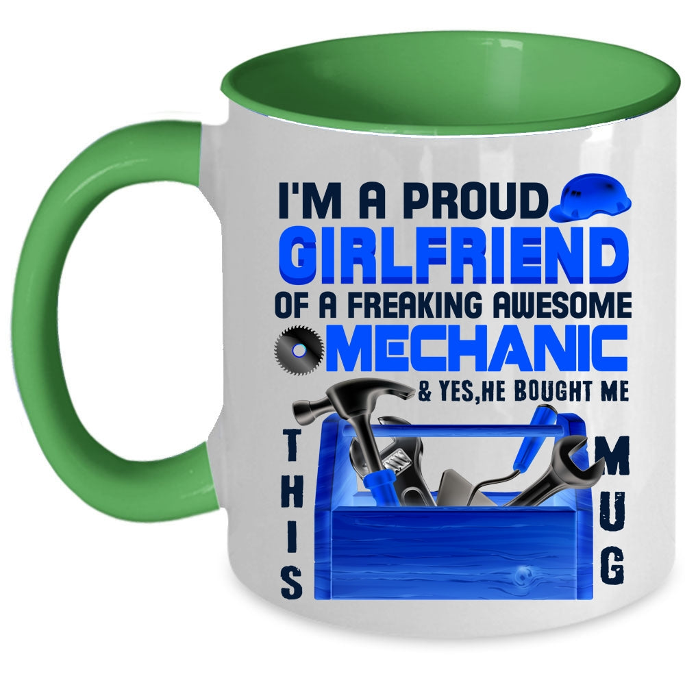 Cute Girlfriend Coffee Mug, I'm A Proud Girlfriend Of A Mechanic Accent Mug