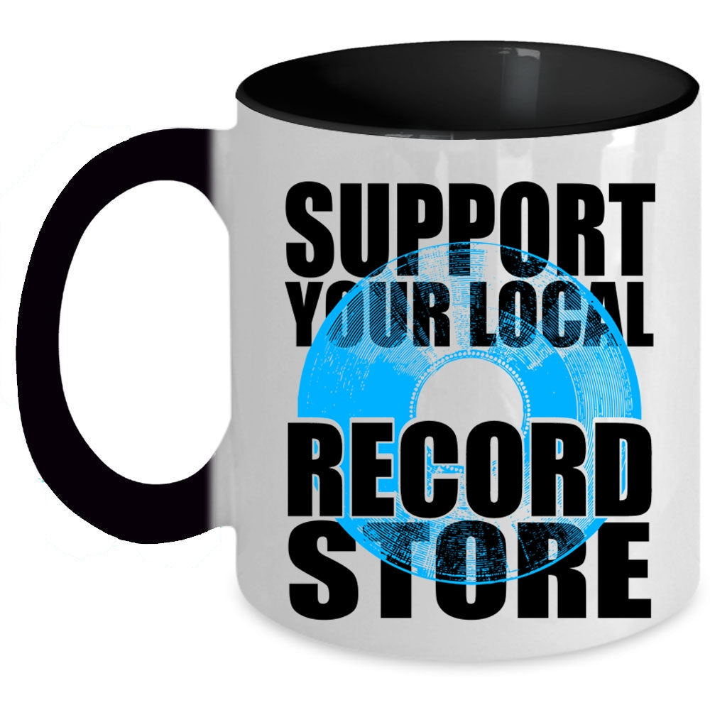Cute Girls Coffee Mug, Support Your Local Record Store Accent Mug