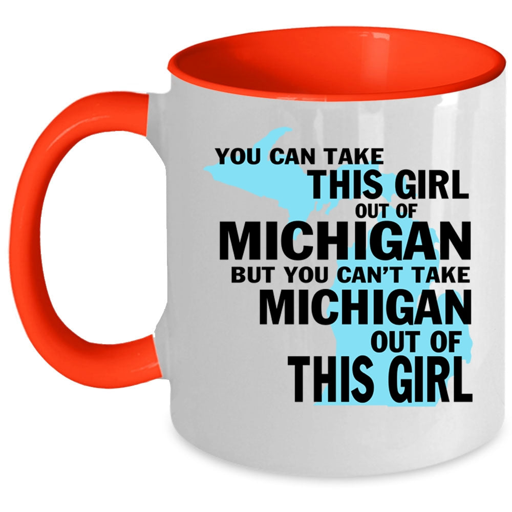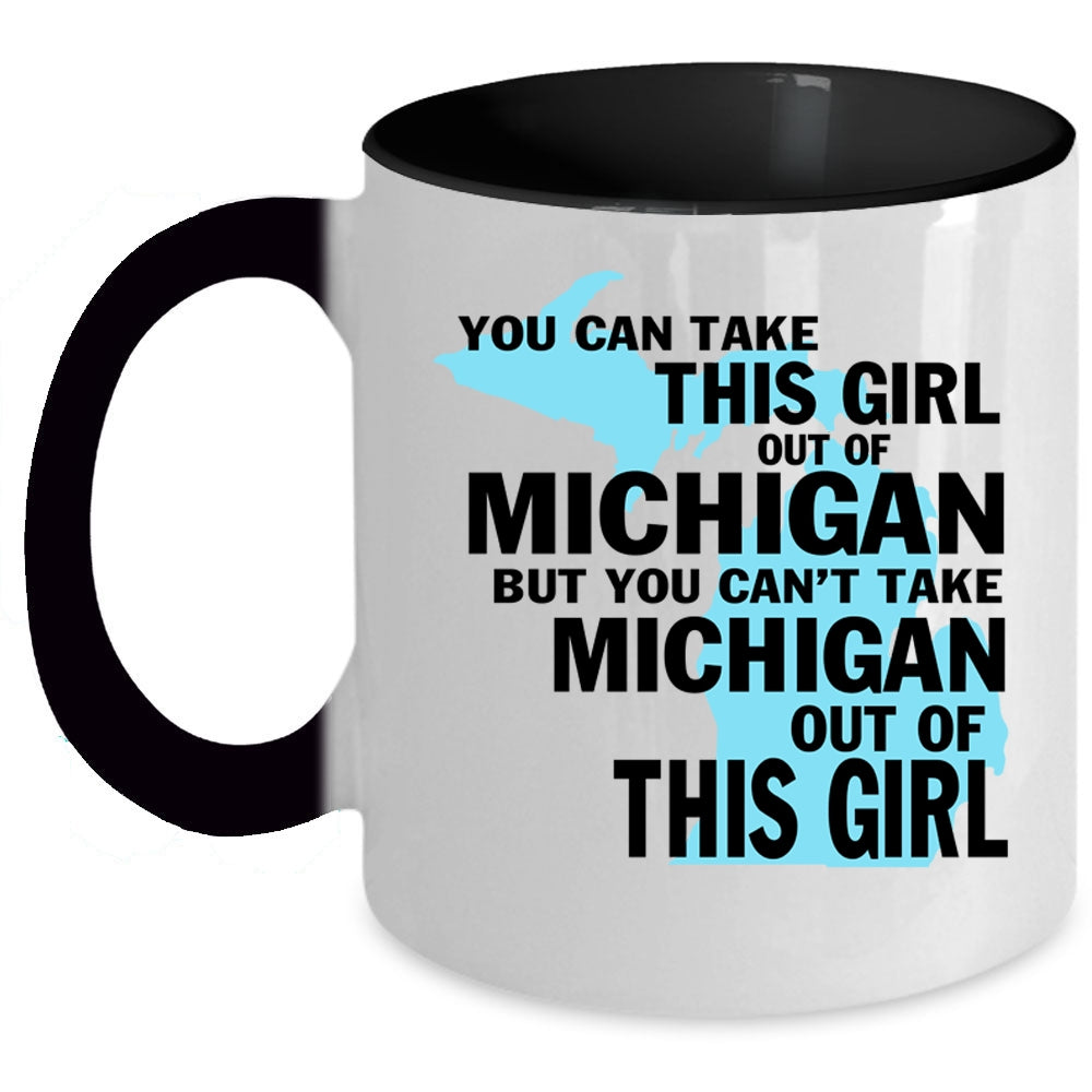 Cute Girls Coffee Mug, You Can't Take Michigan Out Of This Girl Accent Mug