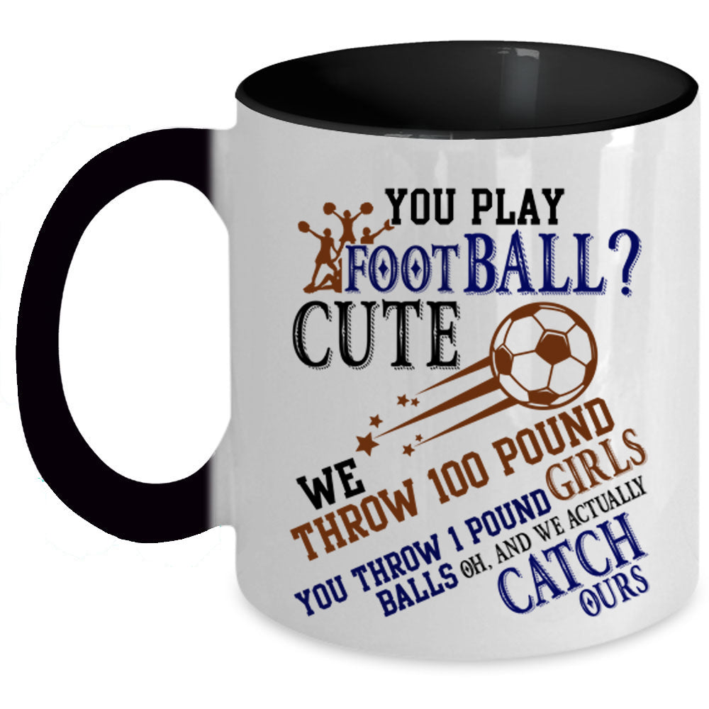 Cute Girls Coffee Mug, You Play Football Accent Mug