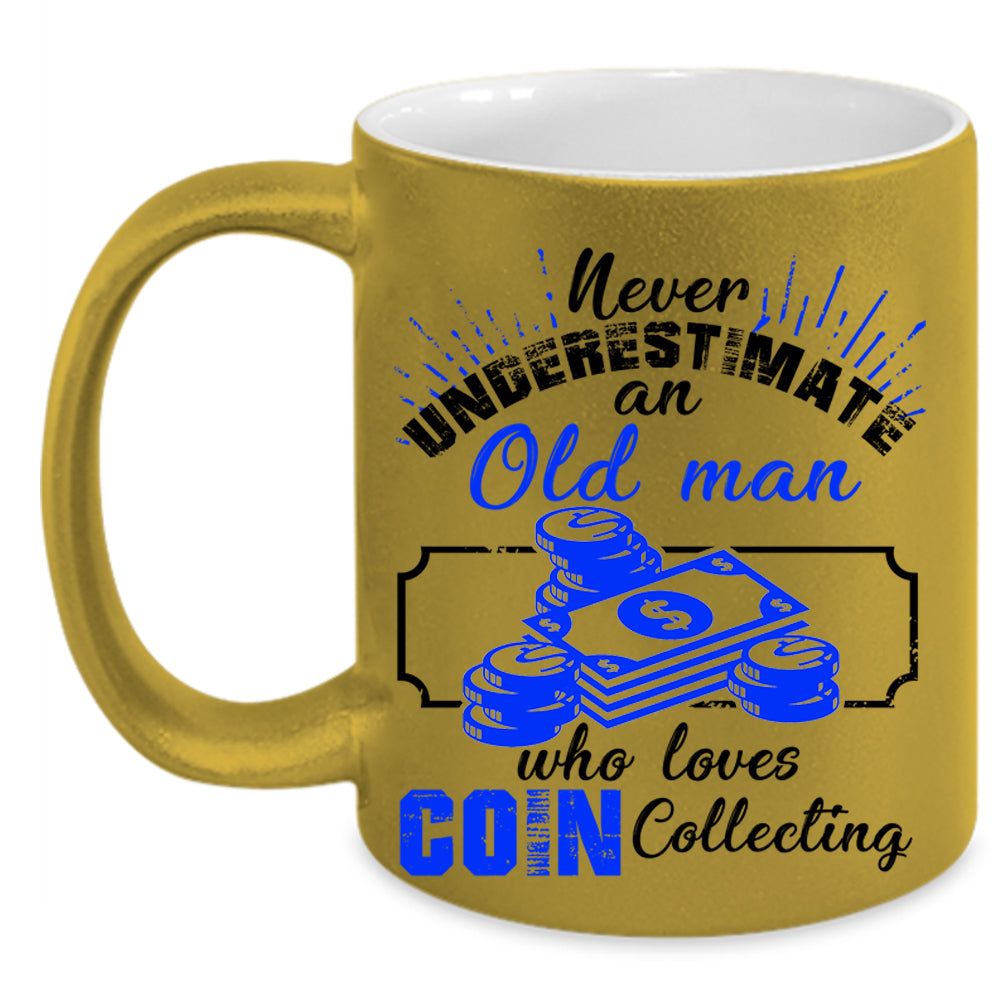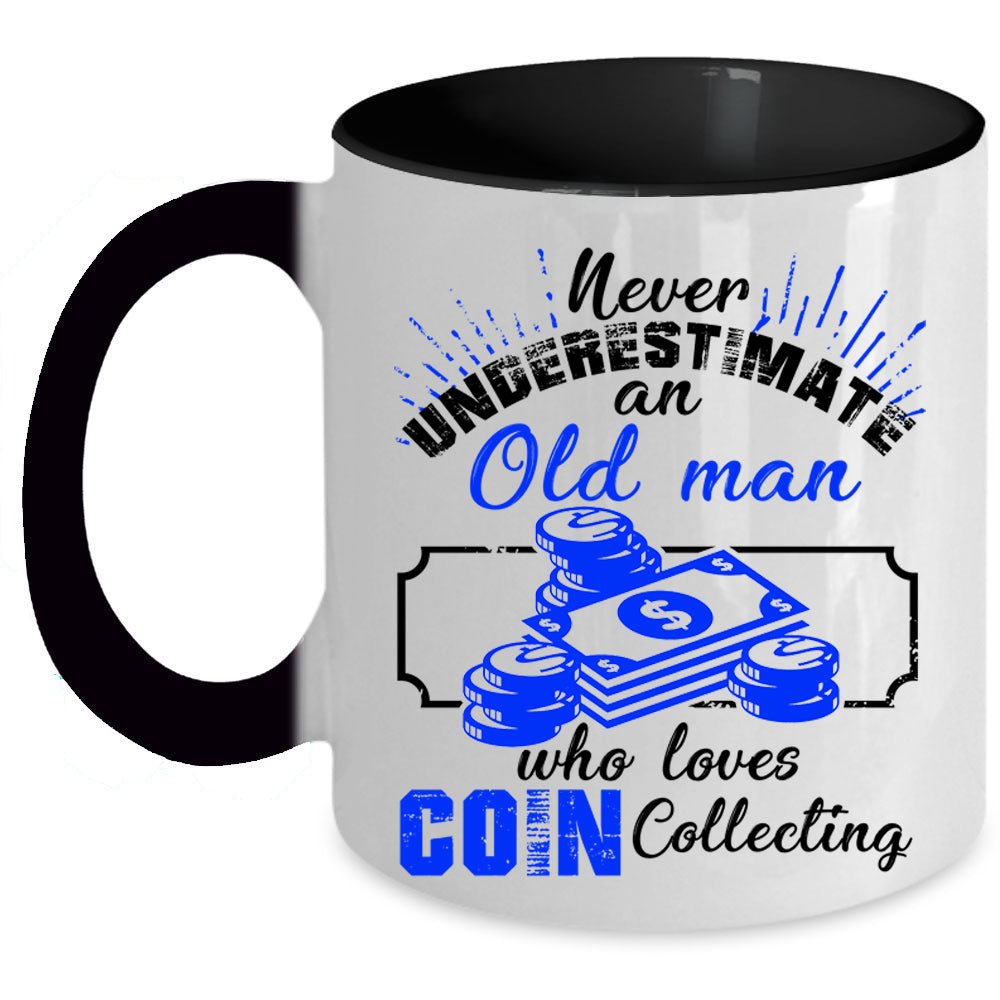 Cute Grandpas Coffee Mug, An Old Man Loves Coin Collecting Accent Mug