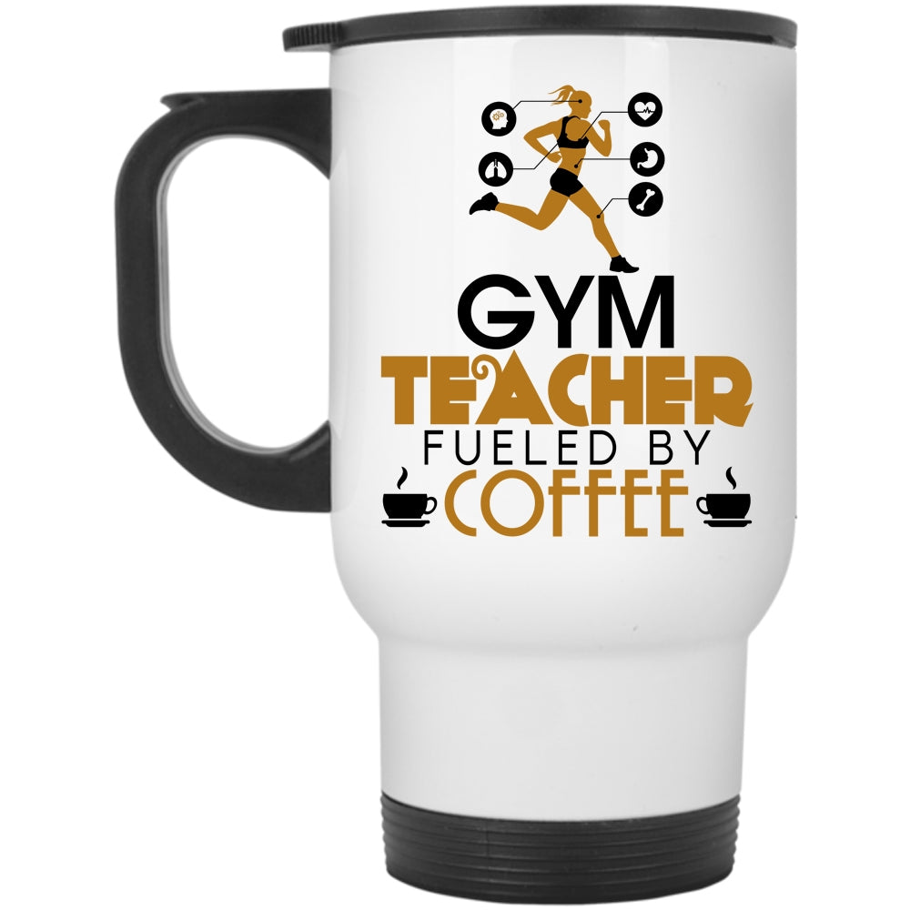 Cute Gym Teacher Travel Mug, Gym Teacher Fueled By Coffee Mug
