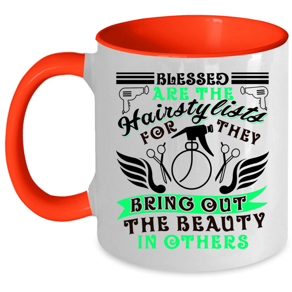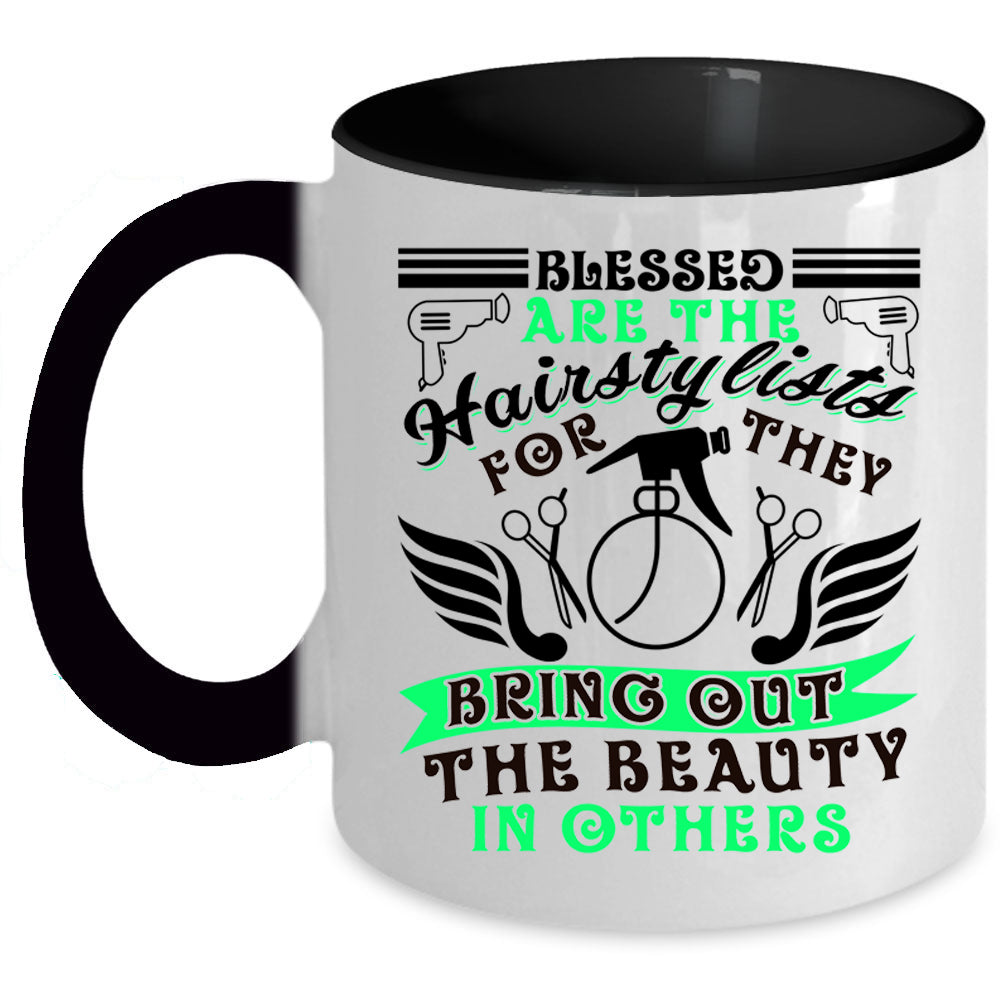 Cute Hairstylist Coffee Mug, Blessed Are The Hairstylist Accent Mug