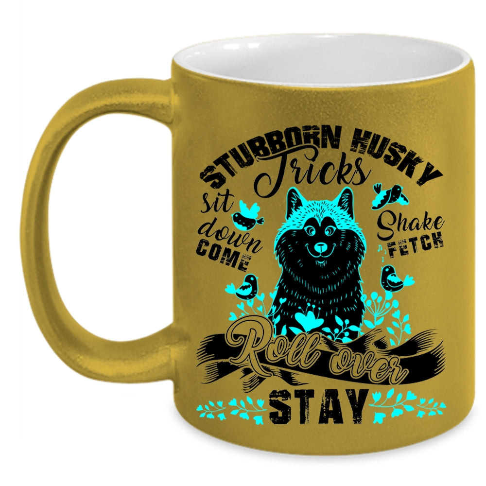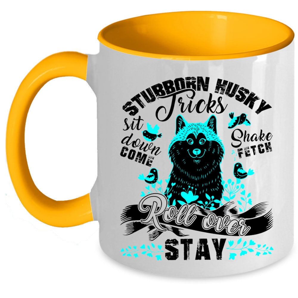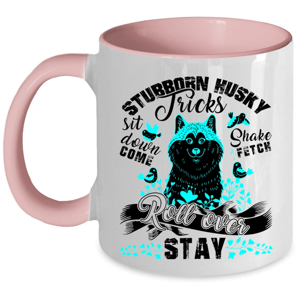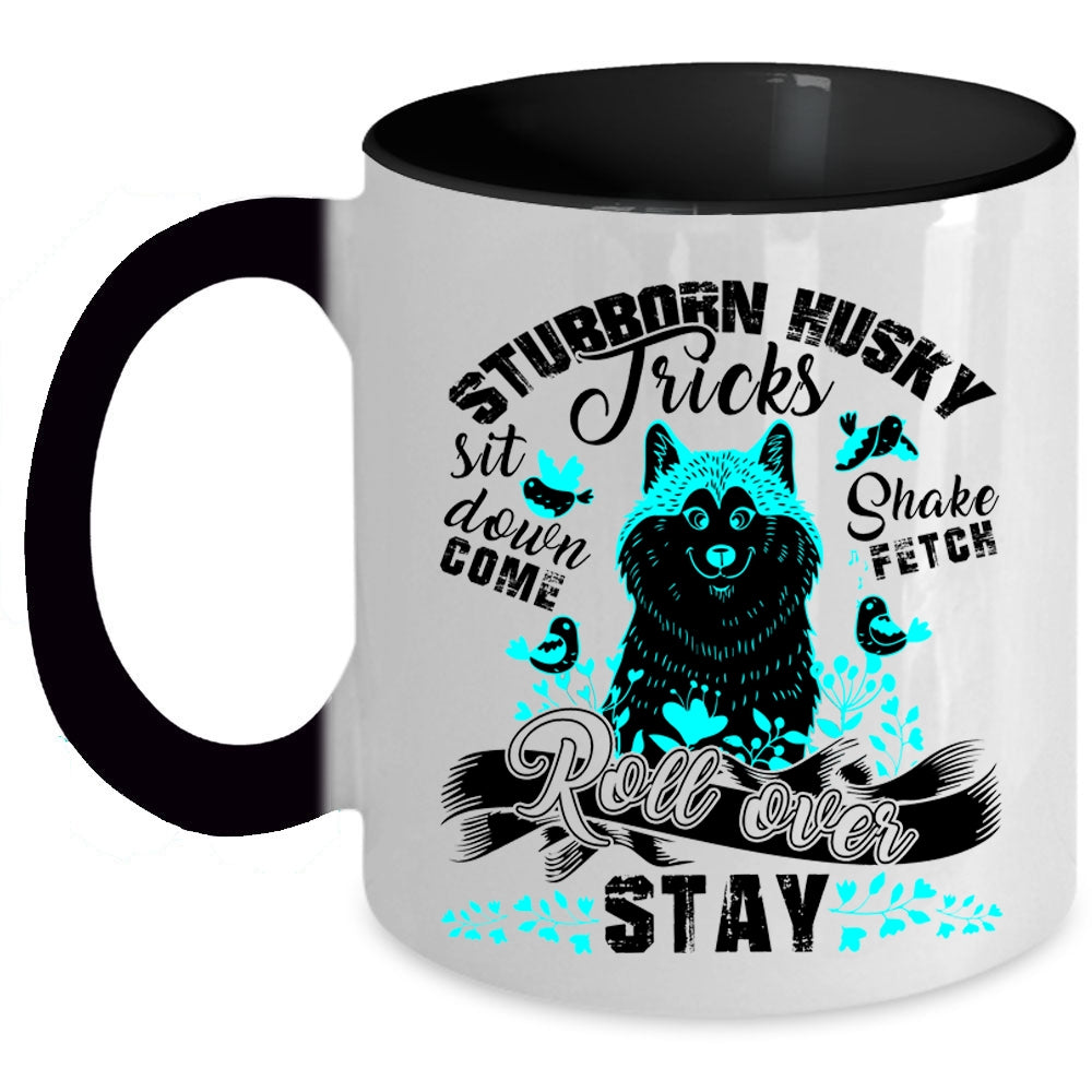 Cute Husky Coffee Mug, Stubborn Husky Tricks Accent Mug