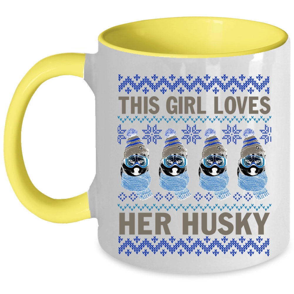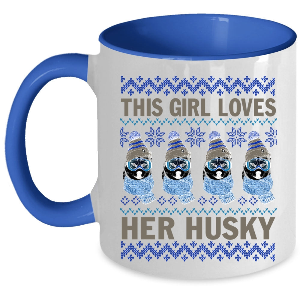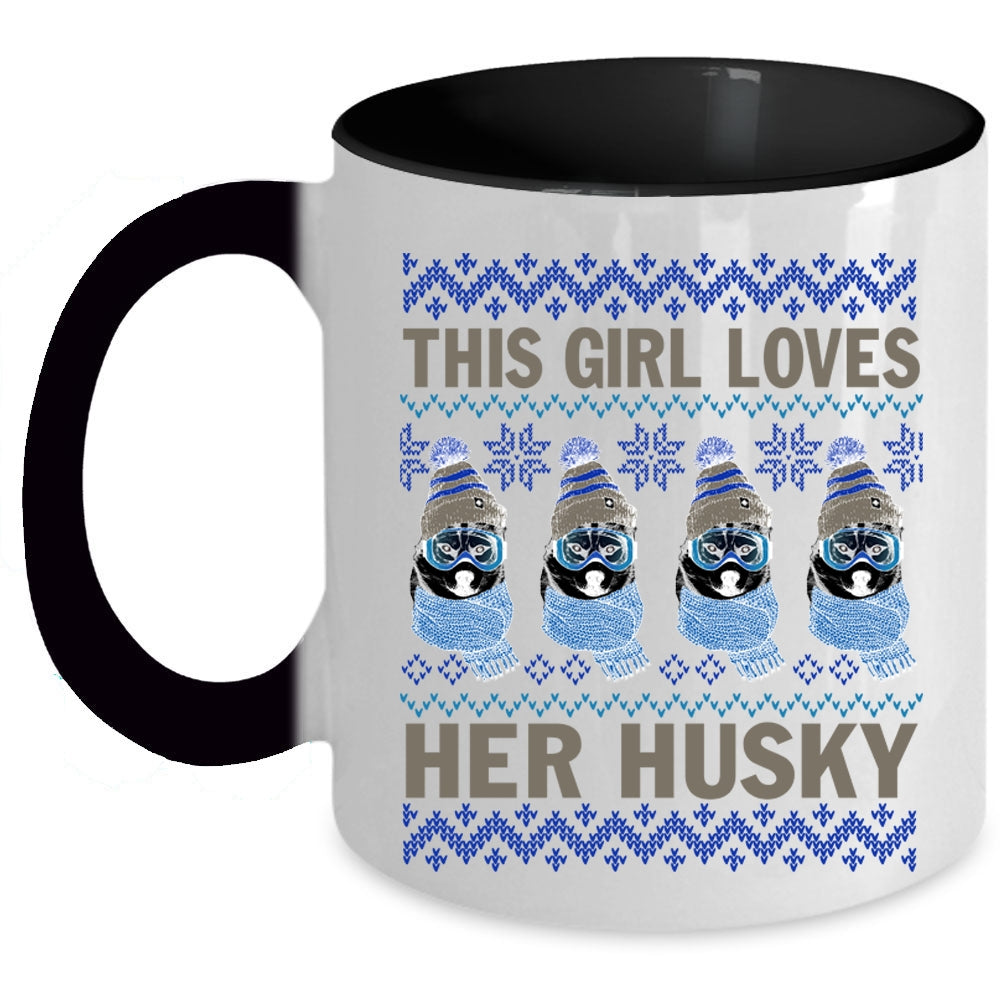 Cute Husky Lover Coffee Mug, This Girl Loves Her Husky Accent Mug