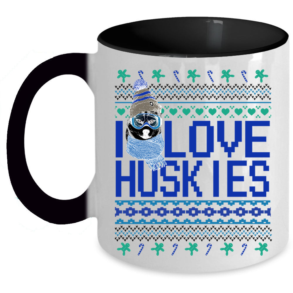 Cute Husky Lovers Coffee Mug, I Love Huskies Accent Mug