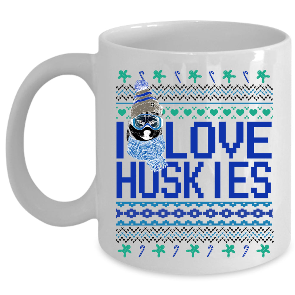 Cute Husky Lovers Coffee Mug, I Love Huskies Cup
