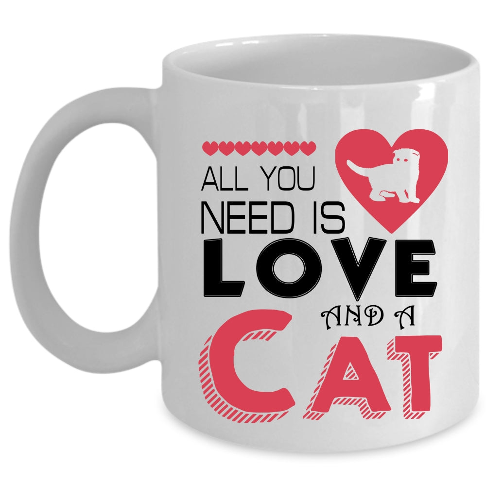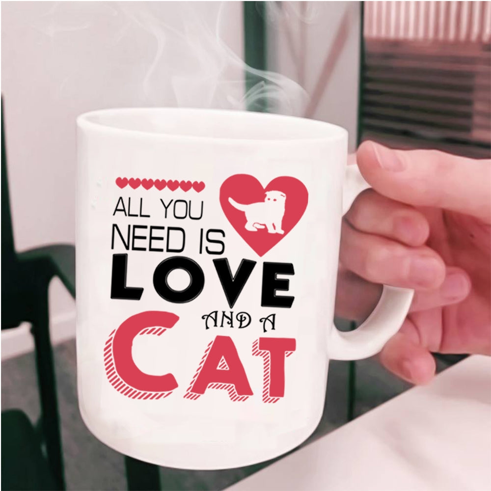Cute Love Coffee Mug, All You Need Is Love And A Cat Cup