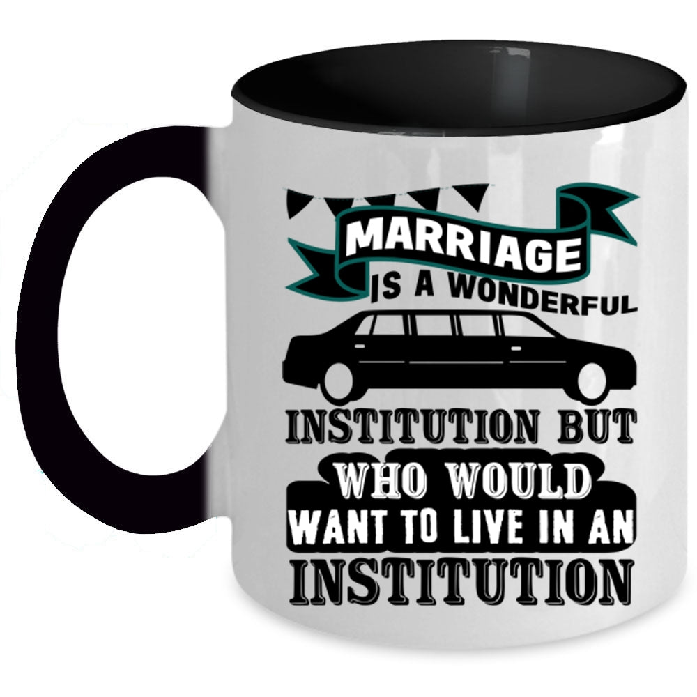 Cute Love Coffee Mug, Marriage Is A Wonderful Institution Accent Mug