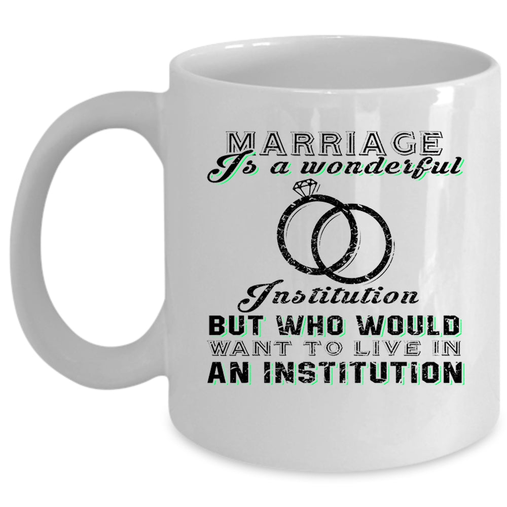 Cute Married Coffee Mug, Marriage Is A Wonderful Institution Cup