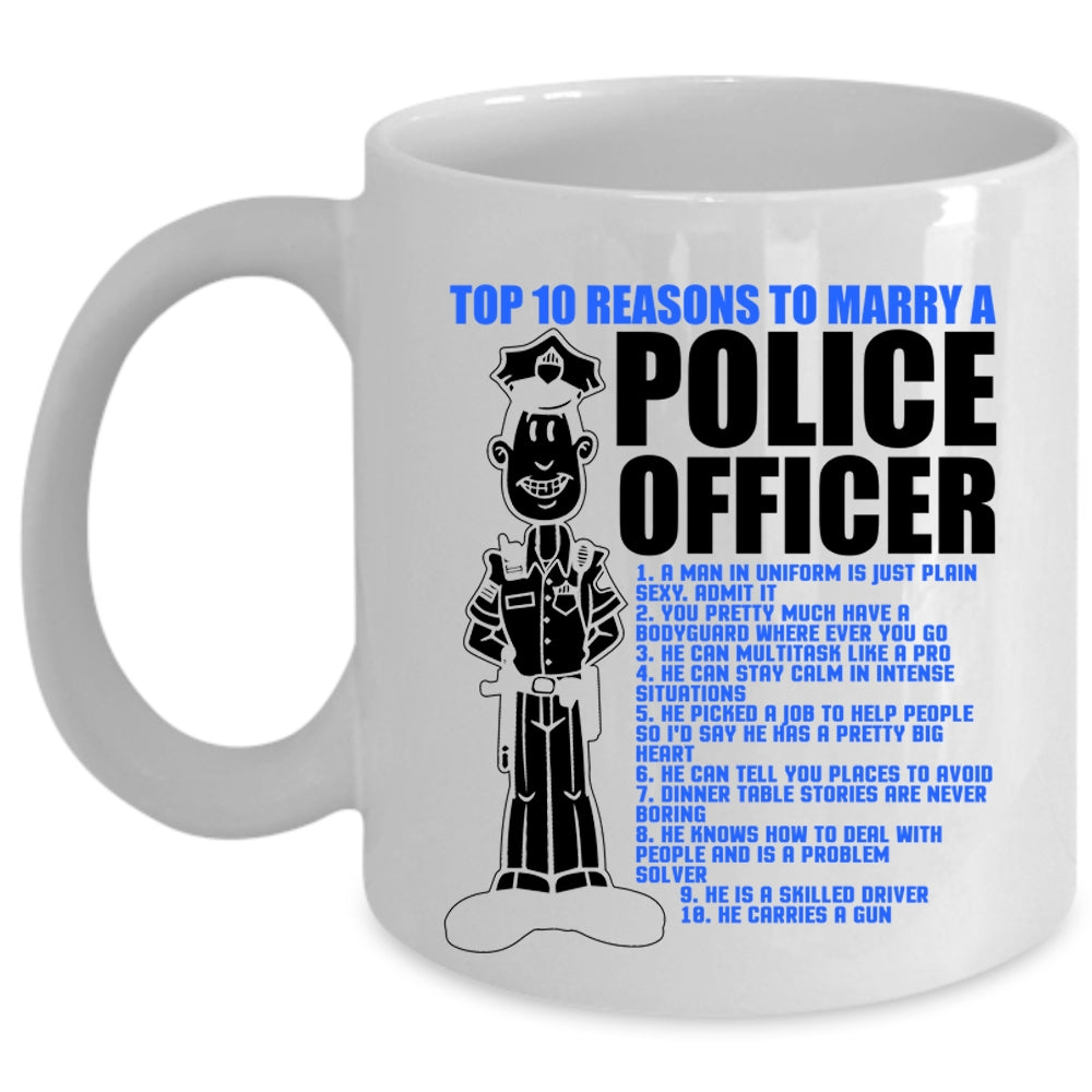 Cute Married Coffee Mug, Top 10 Reasons To Marry Police Officer Cup