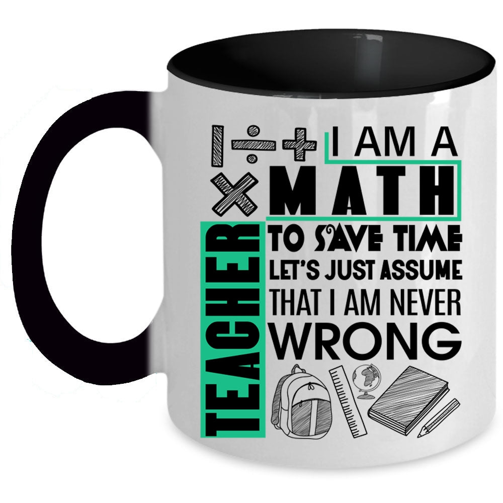 Cute Math Teacher Coffee Mug, I Am A Math Teacher To Save Time Accent Mug