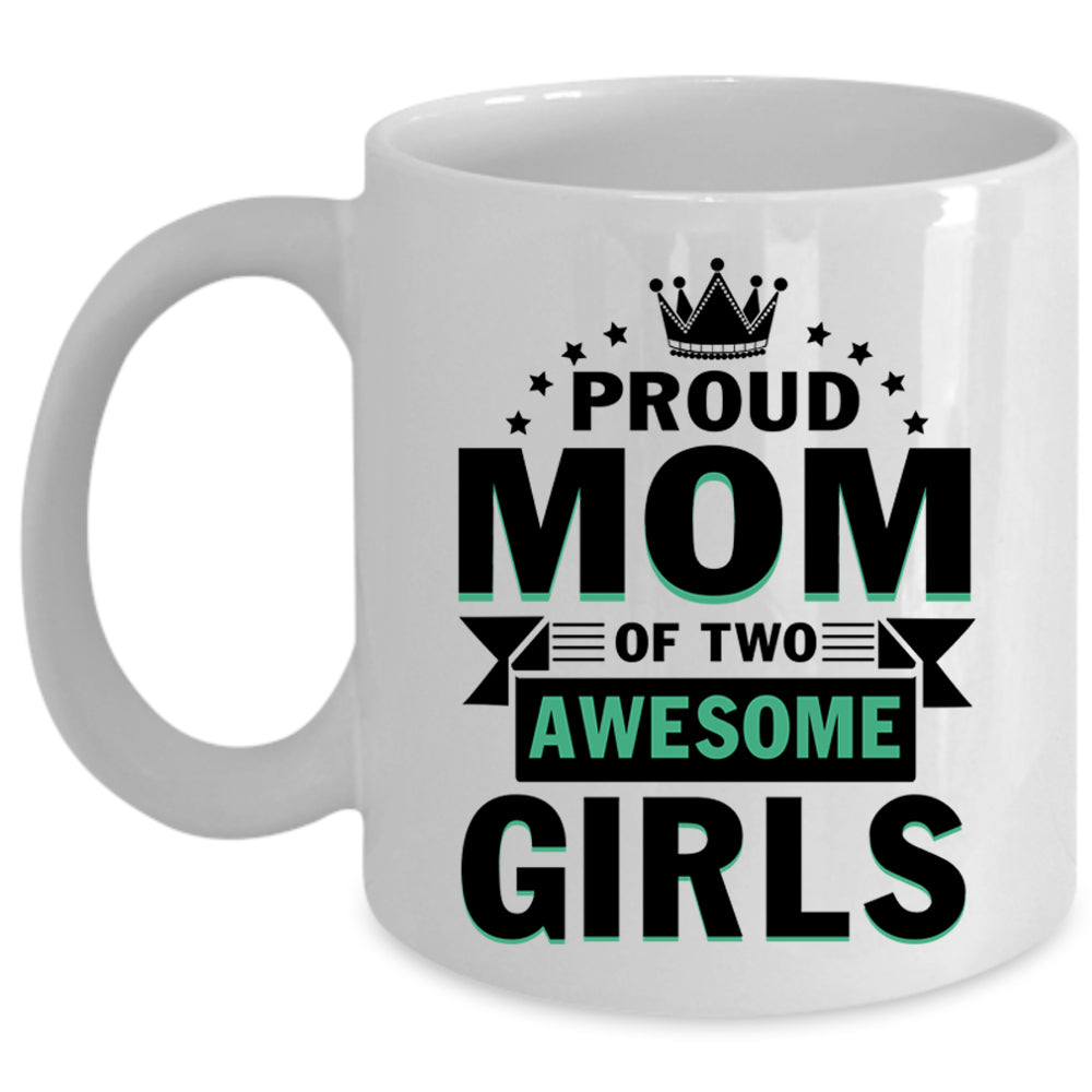 Cute Mom Coffee Mug, Proud Mom Of Two Awesome Girls Cup