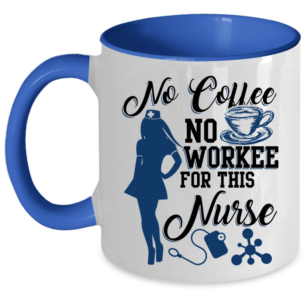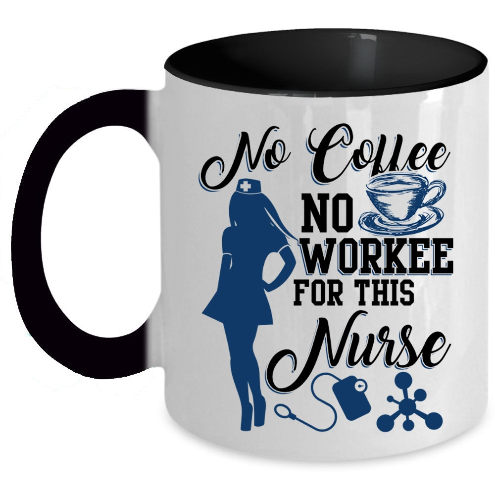 Cute Nurse Coffee Mug, No Coffee No Workee For This Nurse Accent Mug