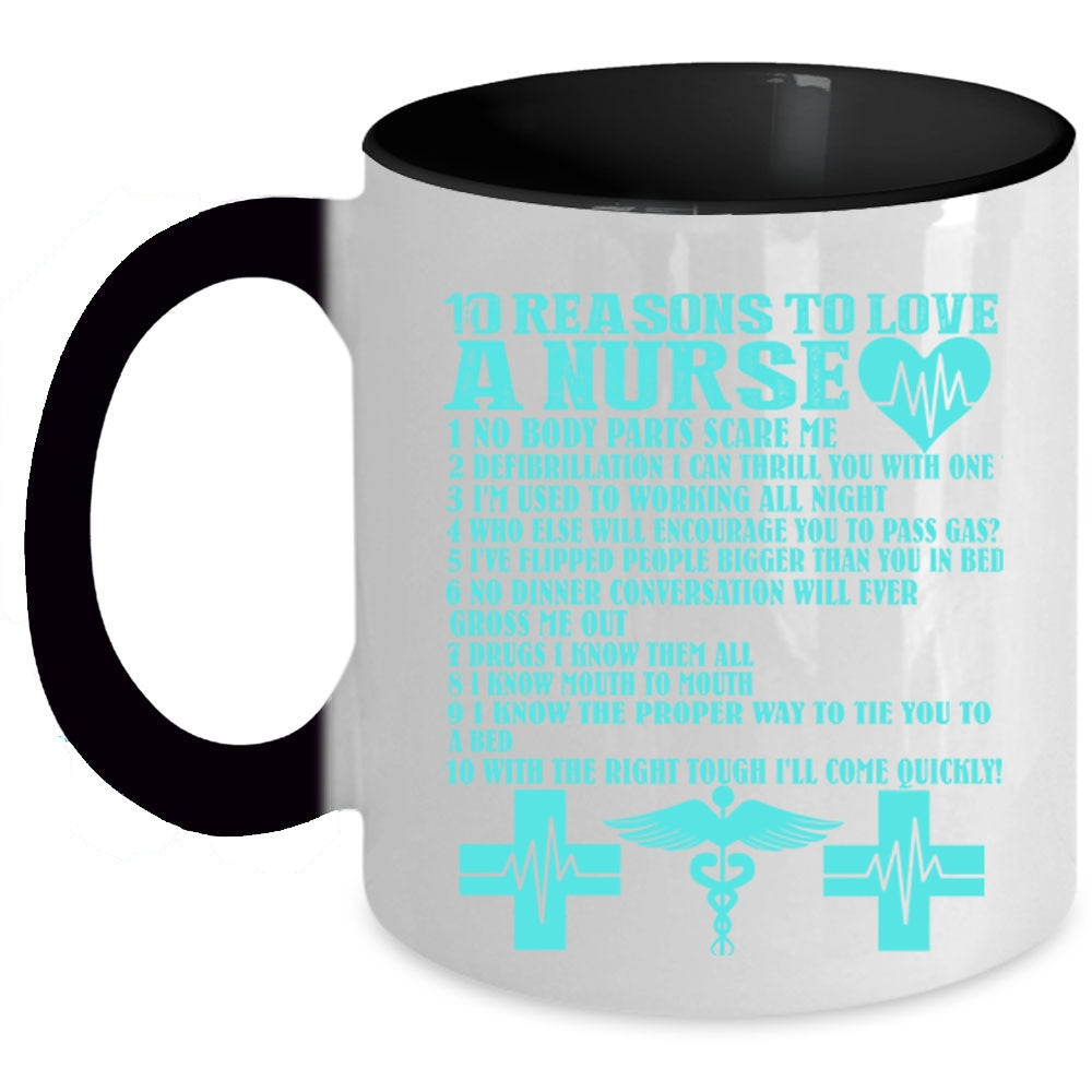 Cute Nurses Coffee Mug, 10 Reasons To Love A Nurse Accent Mug