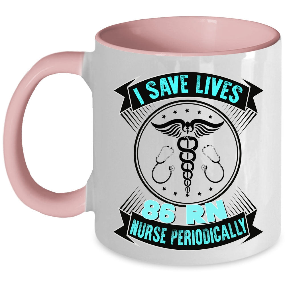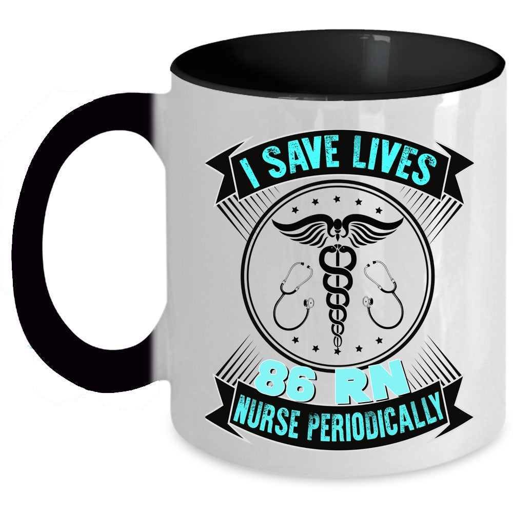 Cute Nurses Coffee Mug, I Save Lives 86 RN Nurse Periodically Accent Mug
