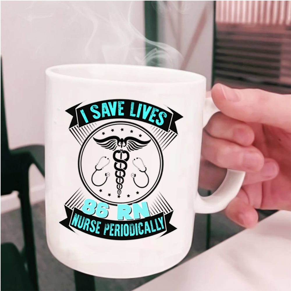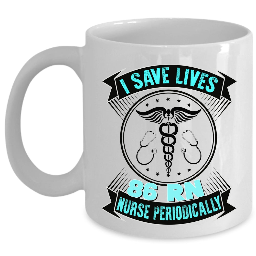 Cute Nurses Coffee Mug, I Save Lives 86 RN Nurse Periodically Cup