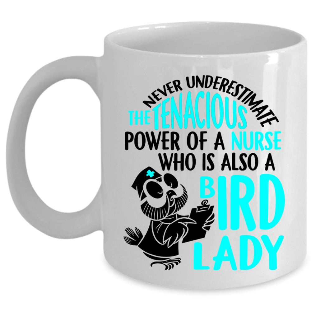 Cute Nurses Coffee Mug, The Power Of A Nurse Is Also A Bird Lady Cup