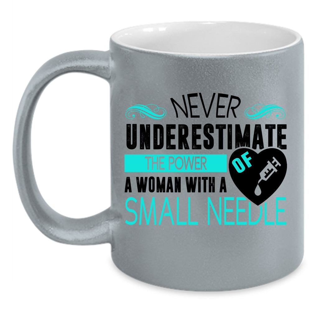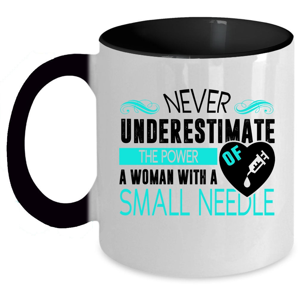 Cute Nurses Coffee Mug, The Power Of A Woman With A Small Needle Accent Mug