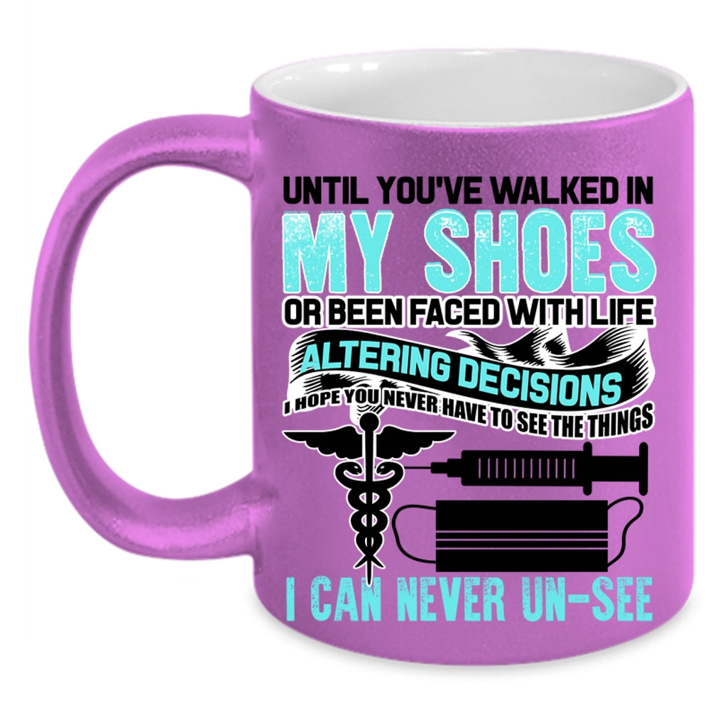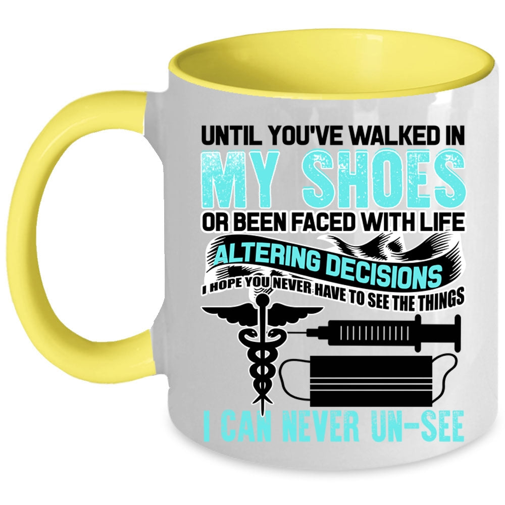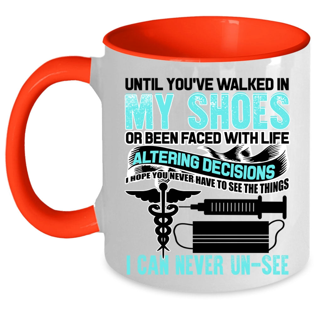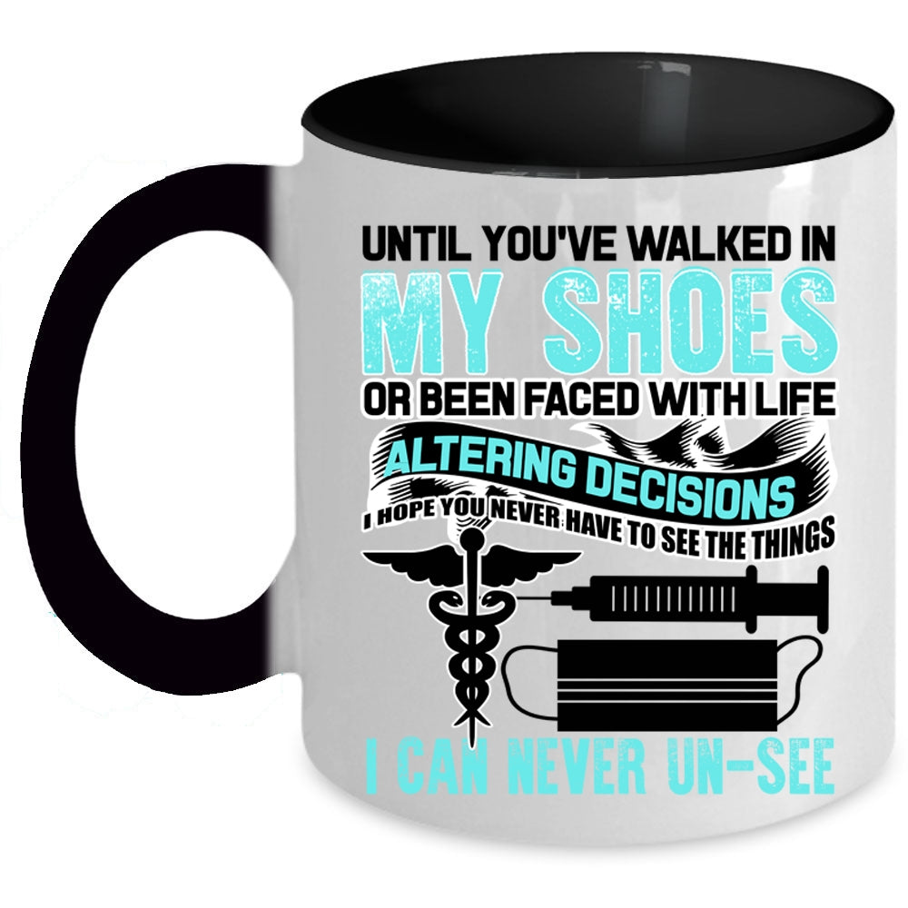 Cute Nurses Coffee Mug, Until You're Walked In My Shoes Accent Mug