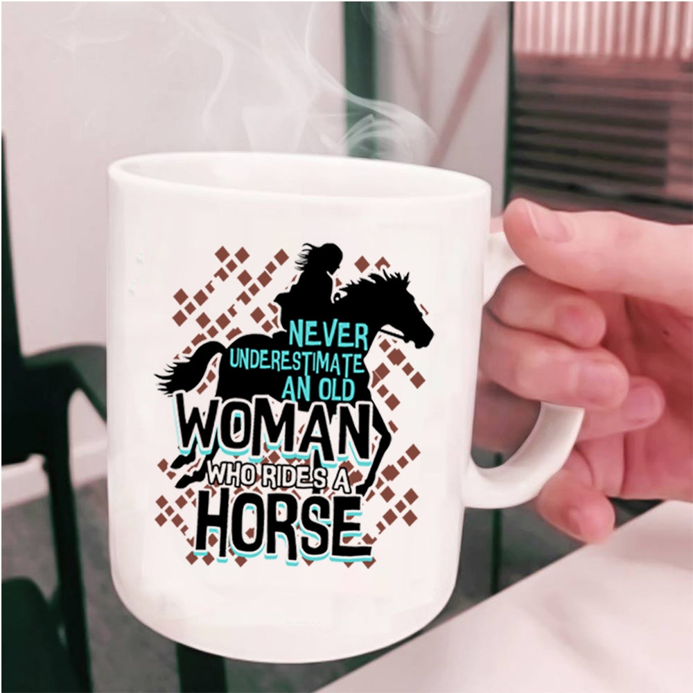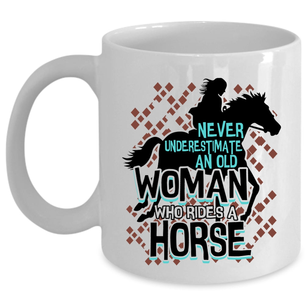 Cute Old Equestrian Coffee Mug, An Old Woman Rides A Horse Cup