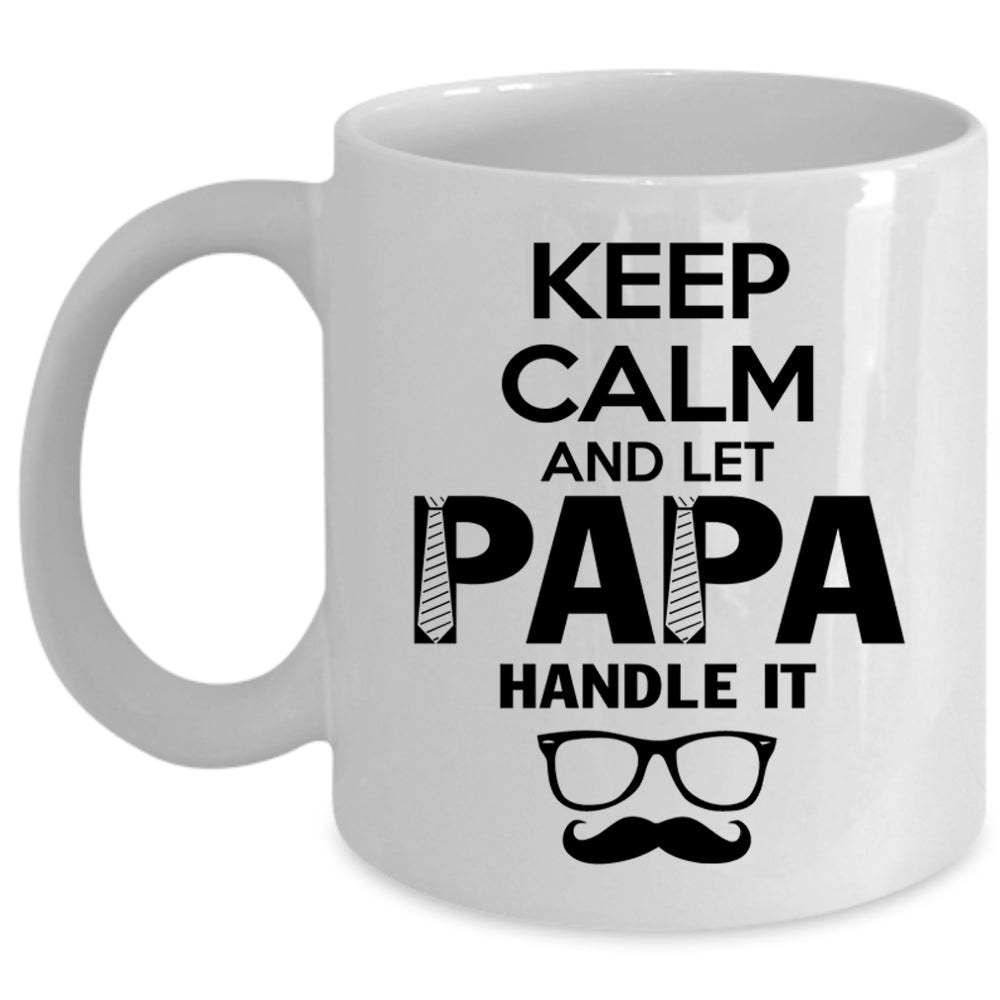 Cute Papa Coffee Mug, Keep Calm And Let Papa Handle It Cup