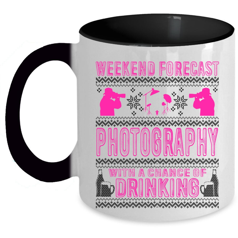 Cute Photographer Coffee Mug, Weekend Forecast Photography Accent Mug