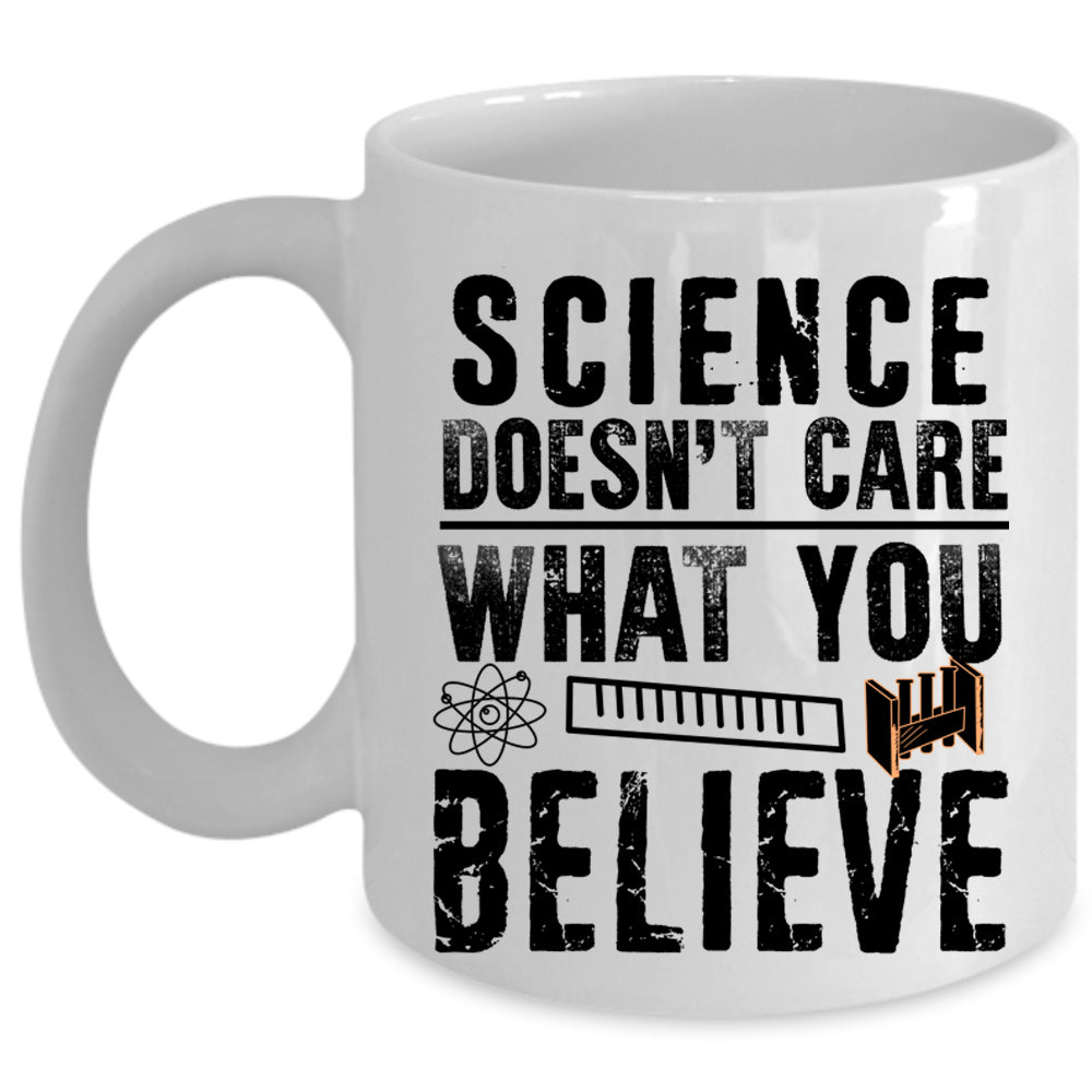 Cute Scientist Coffee Mug, Science Doesn't Care What You Believe Cup
