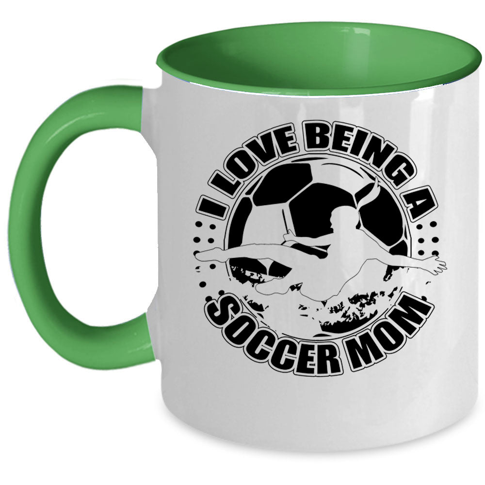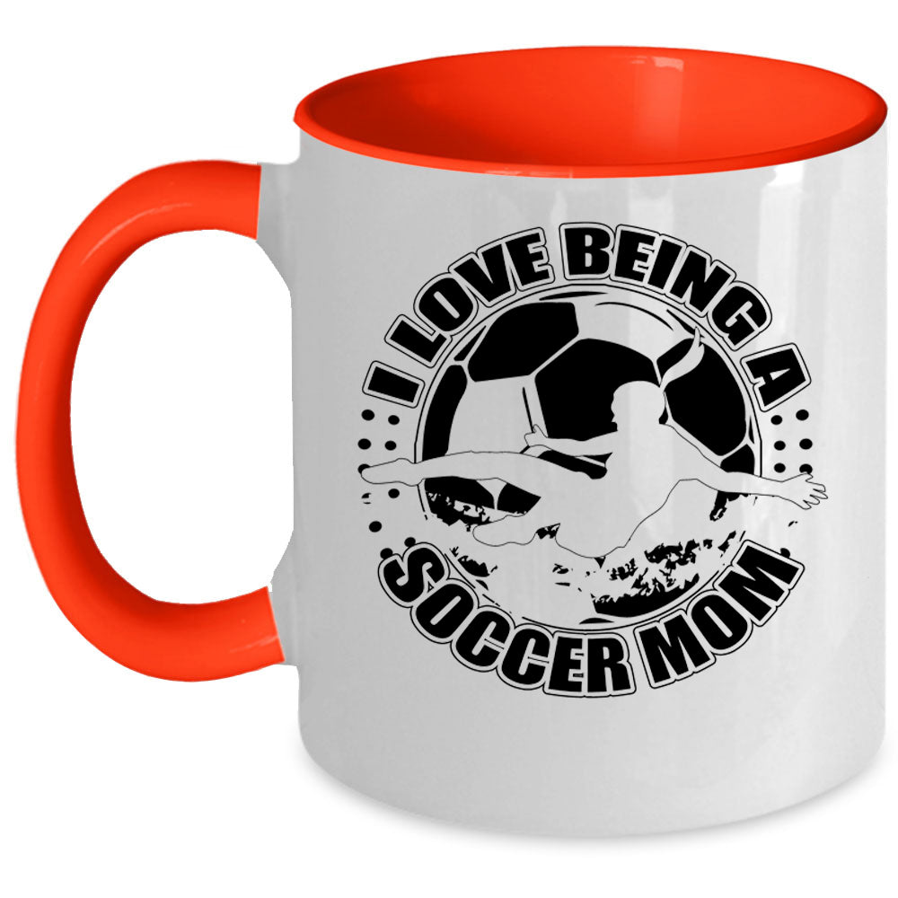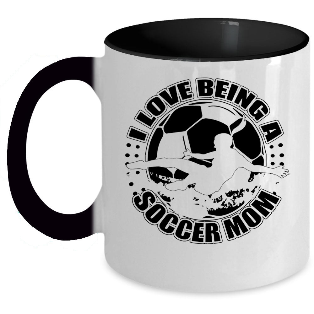 Cute Soccer Mom Coffee Mug, I Love Being A Soccer Mom Accent Mug