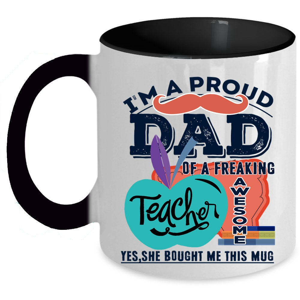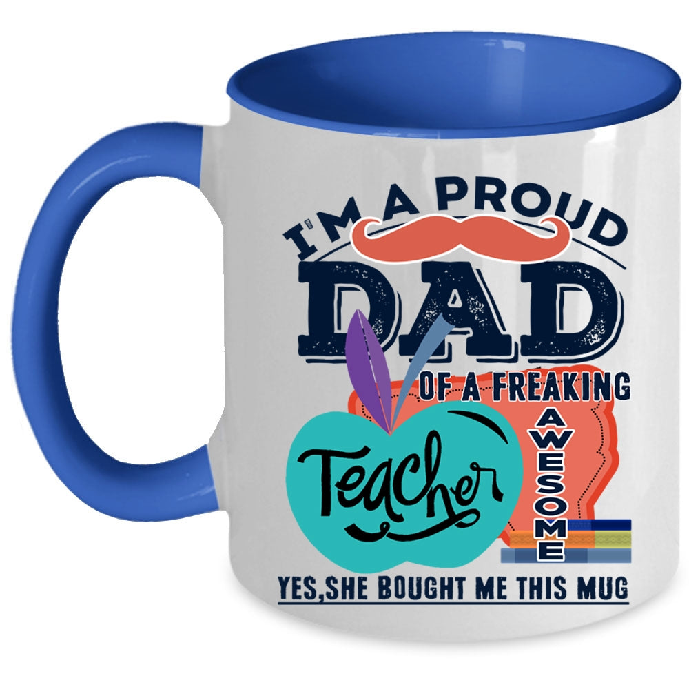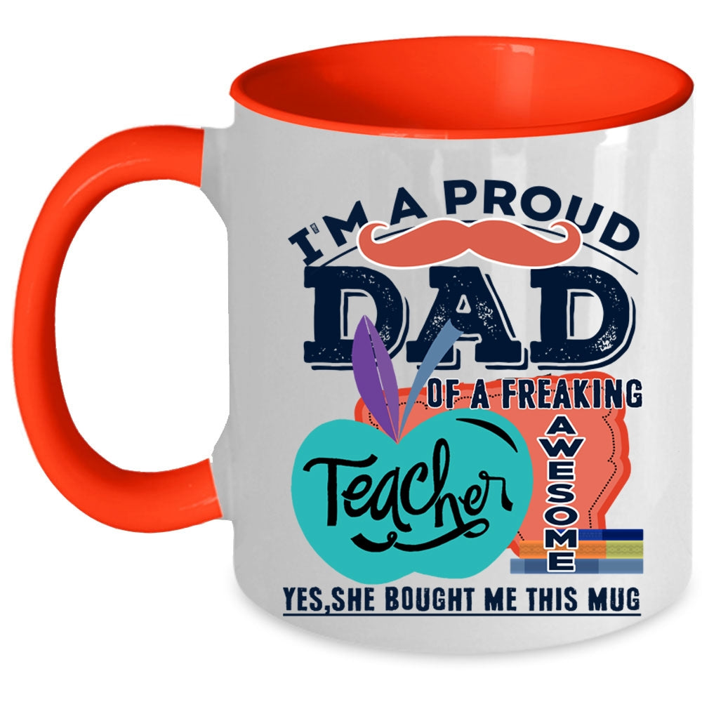 Cute Teacher Coffee Mug, I'm A Proud Dad Of An Awesome Teacher Accent Mug