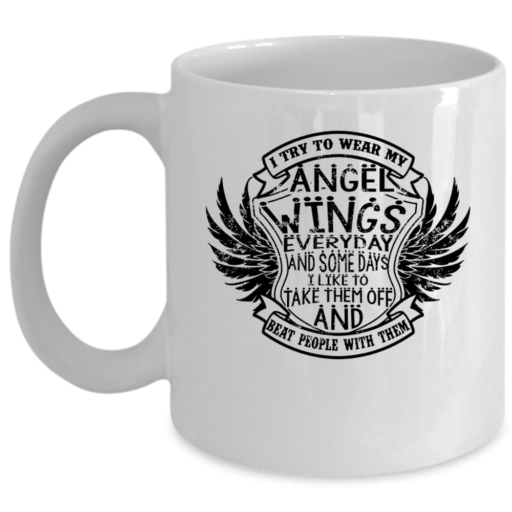 Cute Wings Coffee Mug, I Try To Wear My Angel Wings Everydays Cup