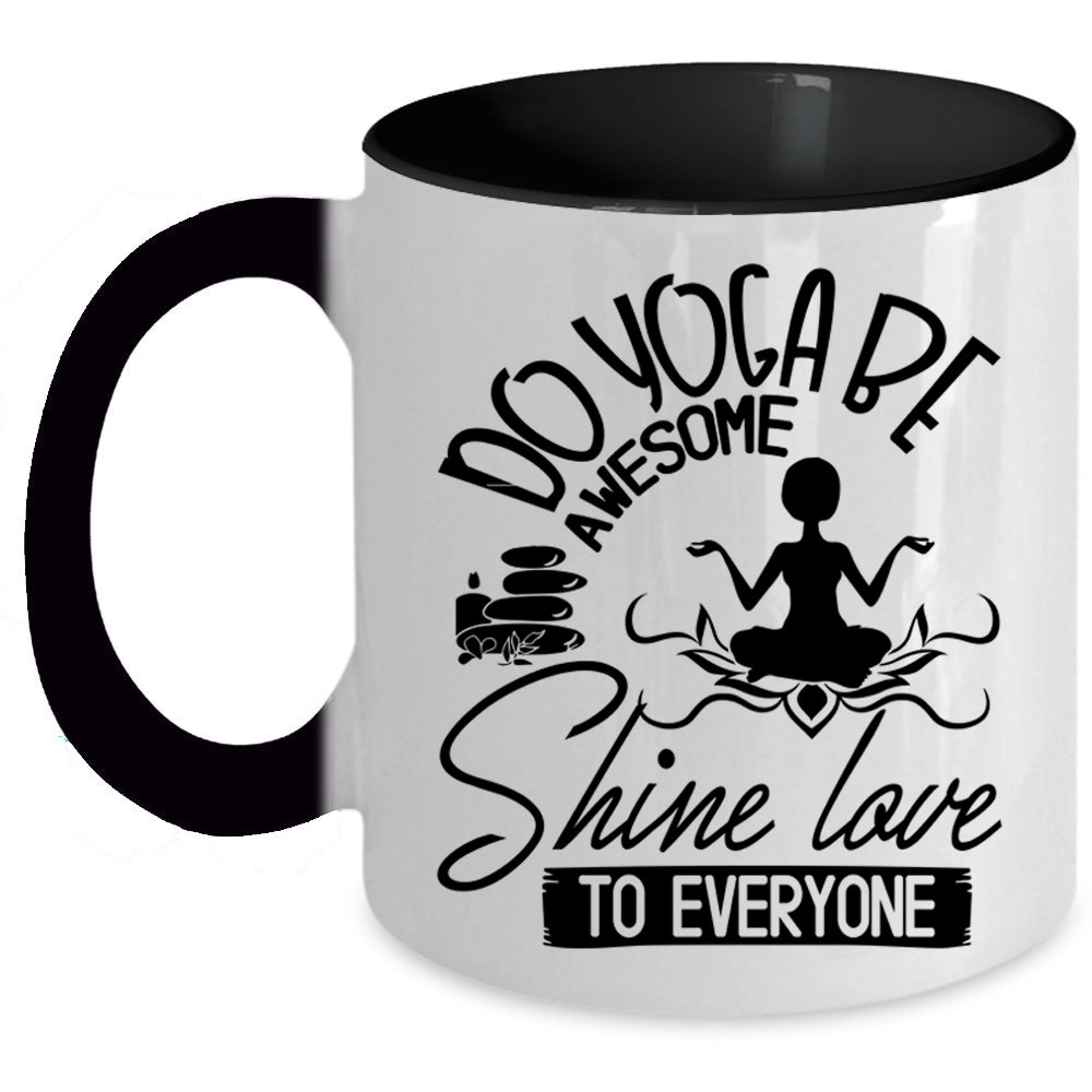 Cute Yogi Coffee Mug, Do Yoga Be Awesome Shine Love To Everyone Accent Mug