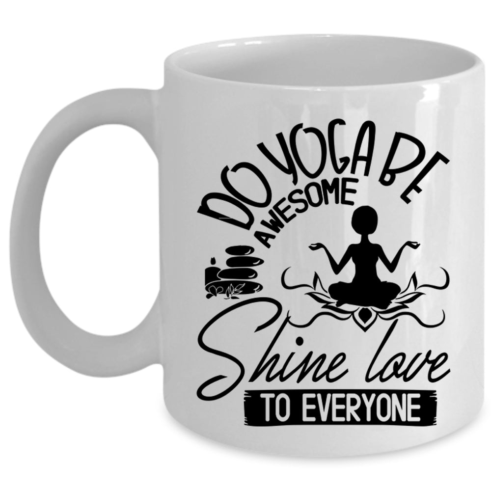 Cute Yogi Coffee Mug, Do Yoga Be Awesome Shine Love To Everyone Cup