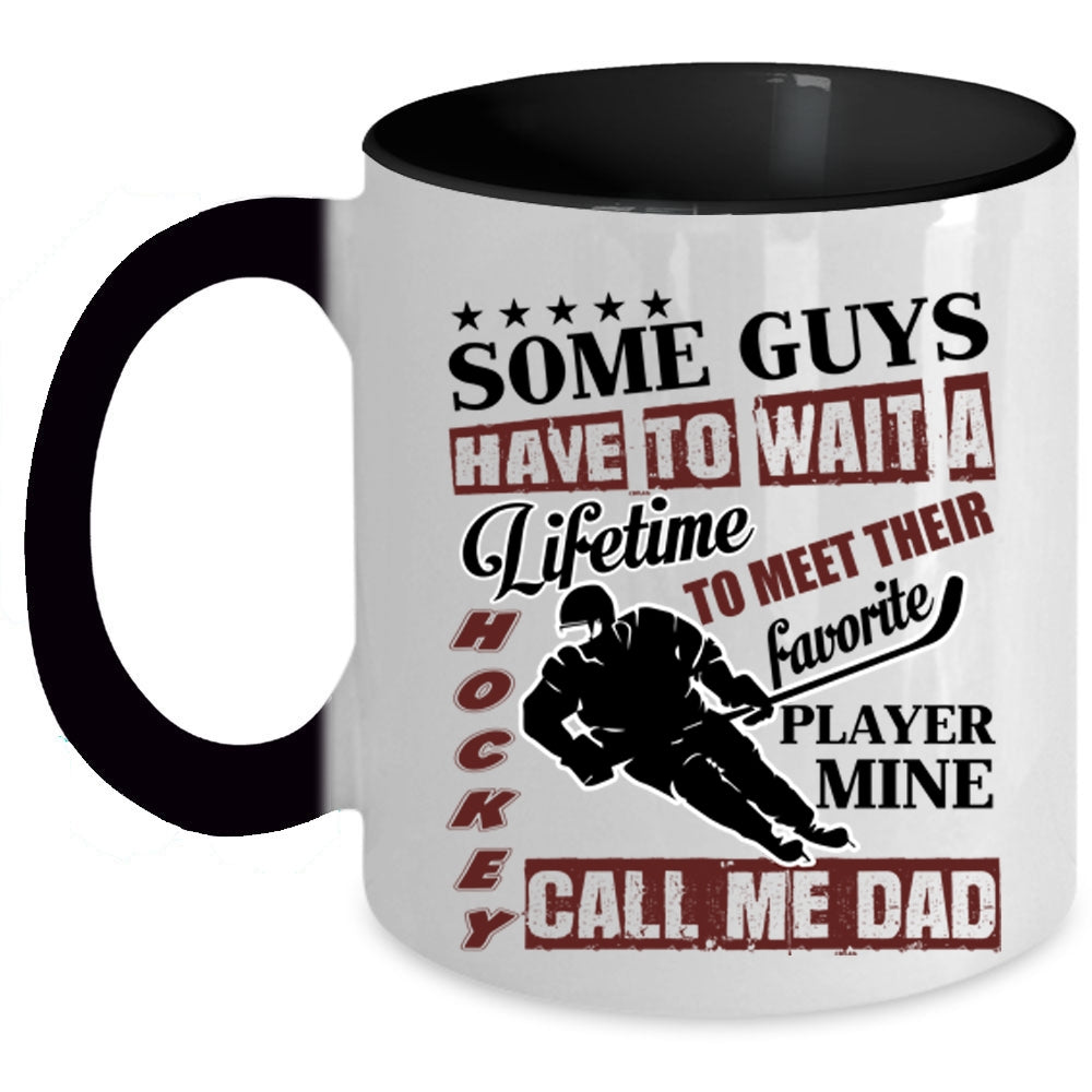 Daddy Coffee Mug, My Favorite Hockey Player Call Me Dad Accent Mug