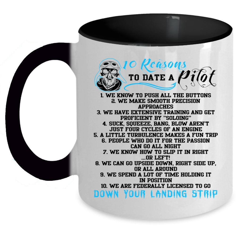 Dating A Pilot Coffee Mug, 10 Reasons To Date A Pilot Accent Mug