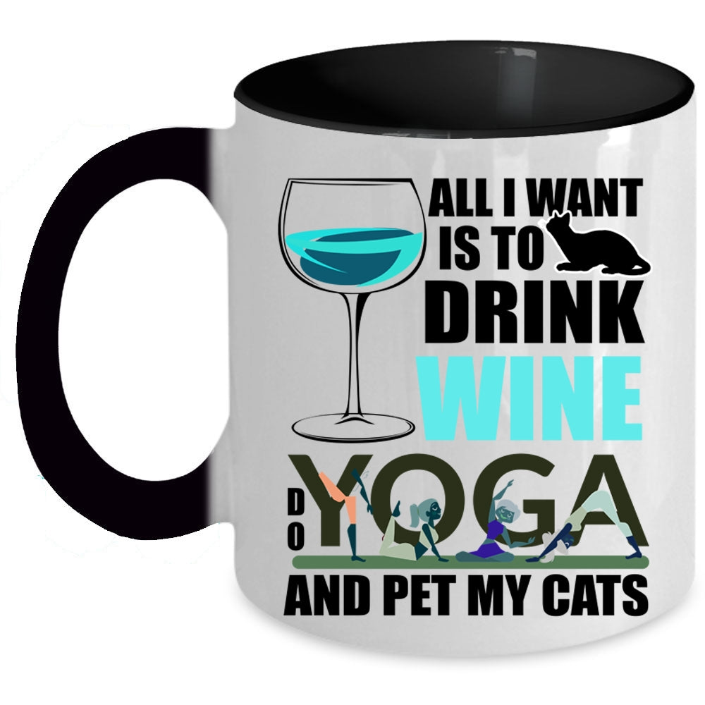 Do Yoga And Pet My Cats Coffee Mug, All I Want Is To Drink Wine Accent Mug
