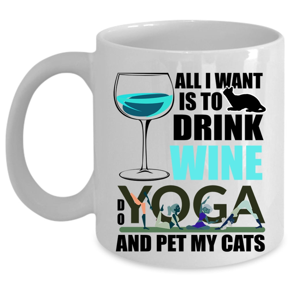 Do Yoga And Pet My Cats Coffee Mug, All I Want Is To Drink Wine Cup