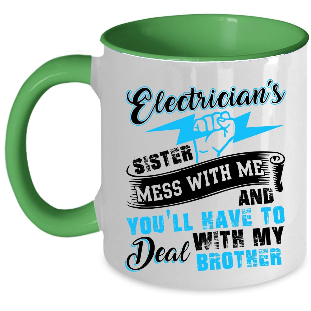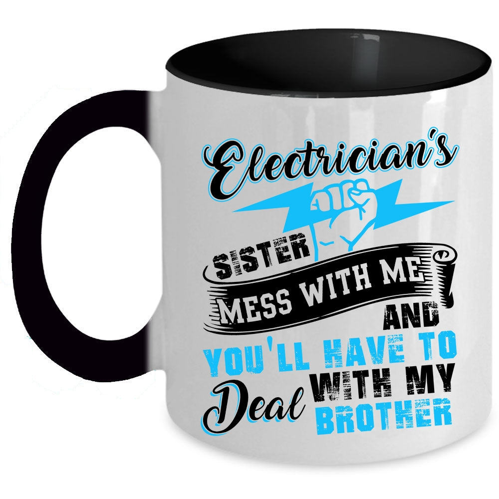 Don't Mess With Me Coffee Mug, Electrician's Sister Accent Mug
