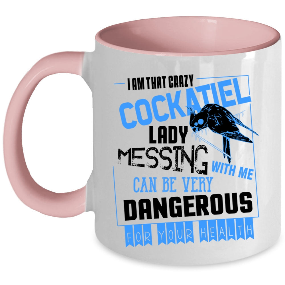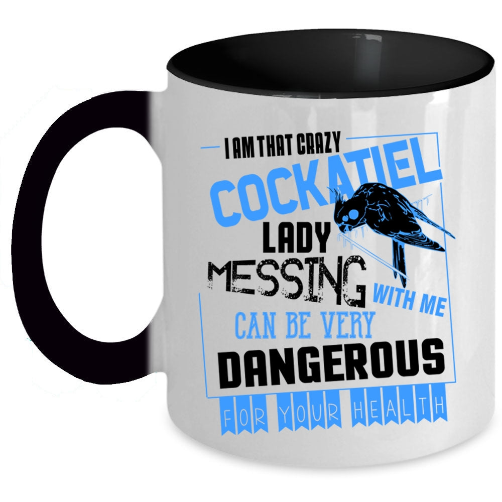 Don't Mess With Me Coffee Mug, I Am That Crazy Cockatiel Lady Accent Mug