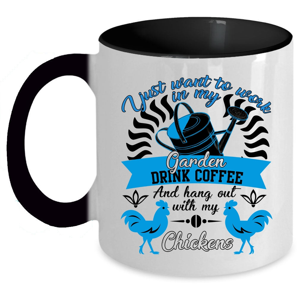 Drink Coffee And My Chickens Coffee Mug, I Just Want To Work In My Garden Accent Mug