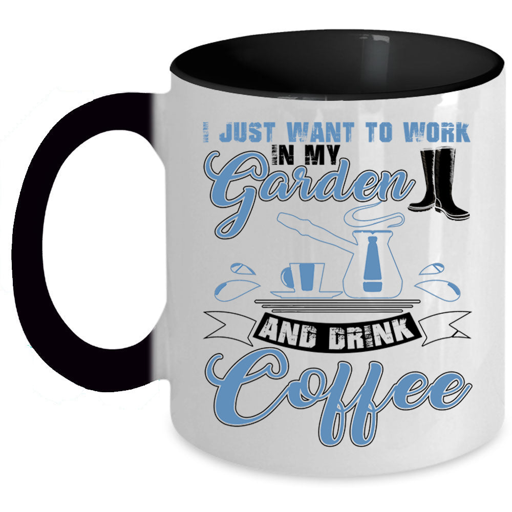 Drink Coffee Coffee Mug, I Just Want To Work In My Garden Accent Mug