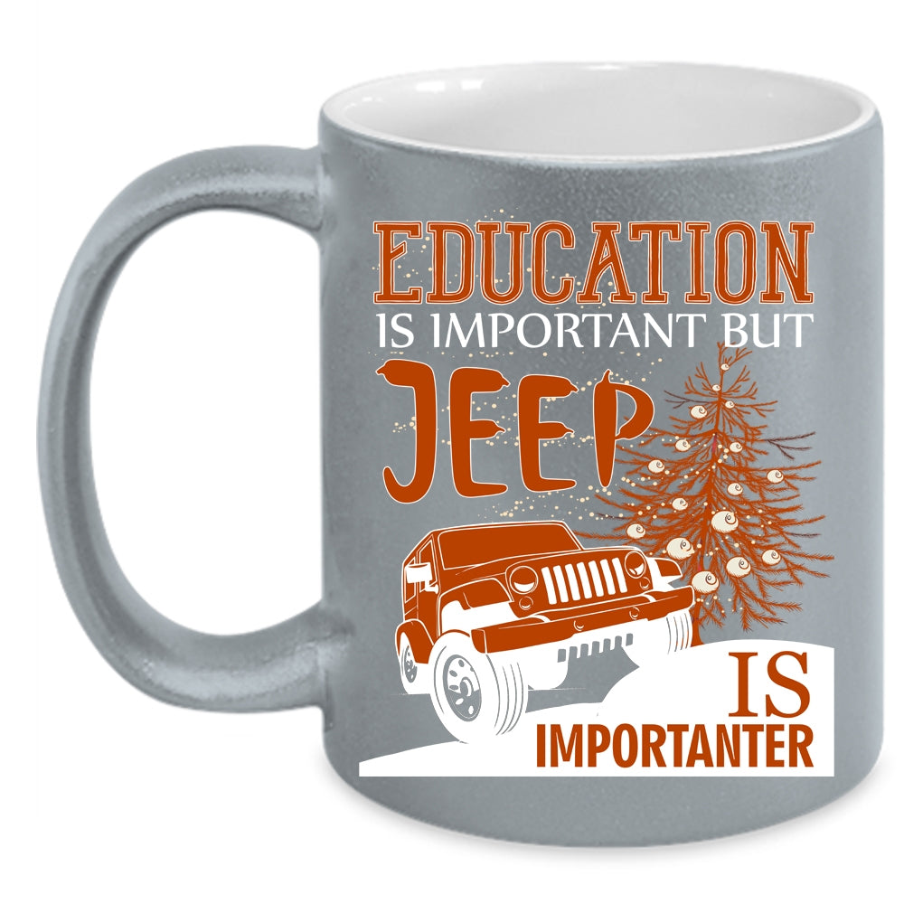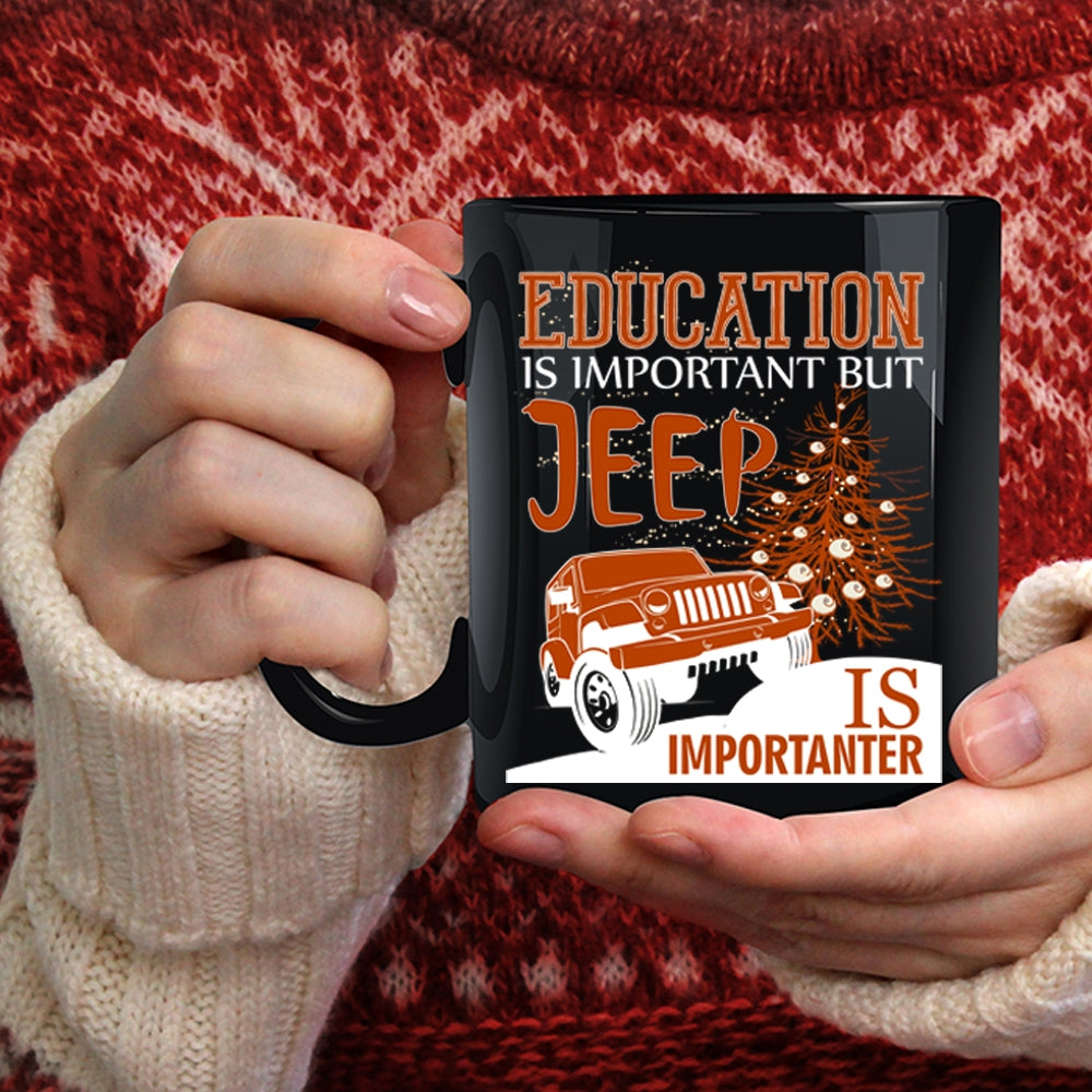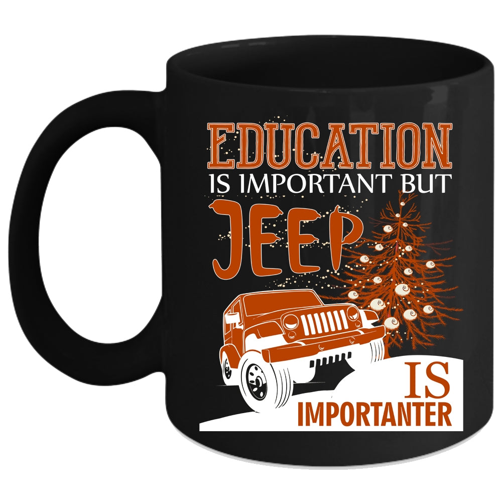 Education Is Important Coffee Mug, Jeep Is Importanter Coffee Cup