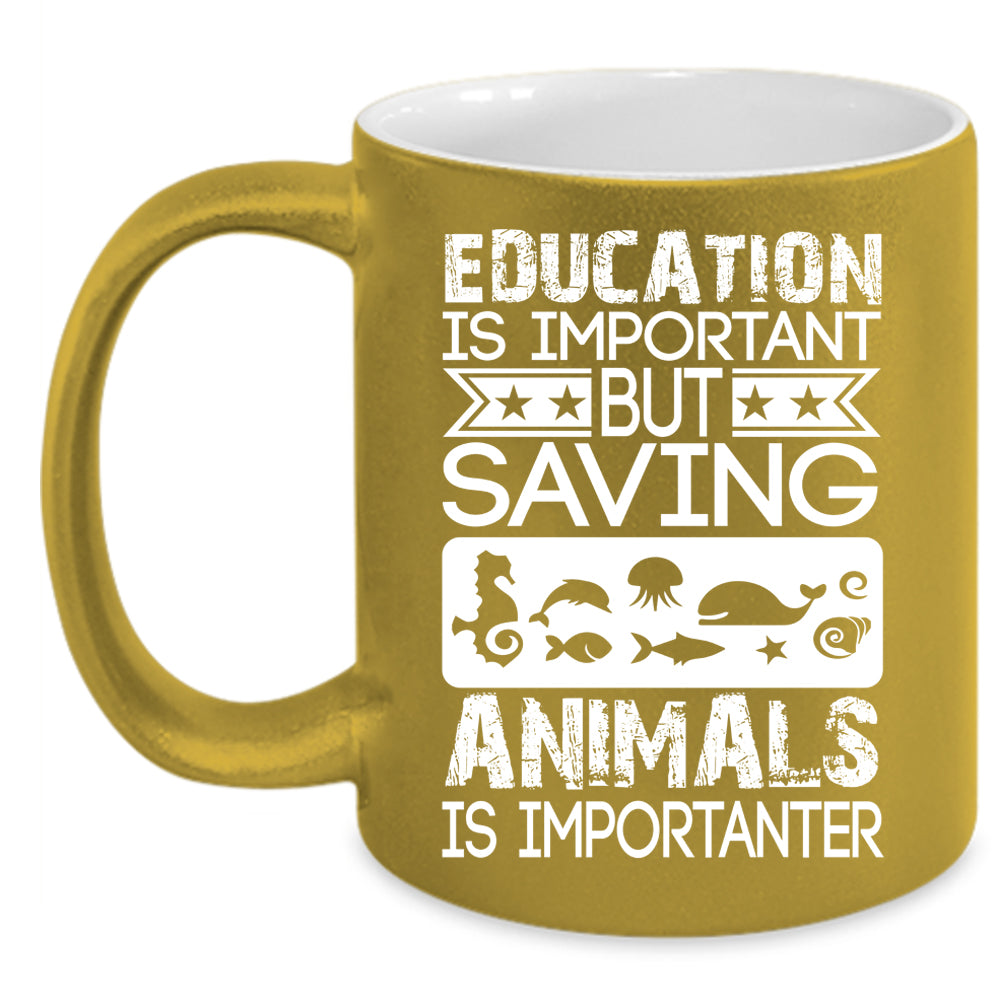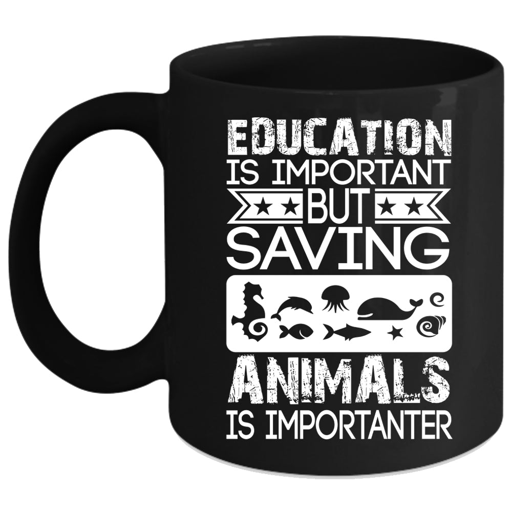 Education Is Important Coffee Mug, Saving Animals Is Importanter Coffee Cup